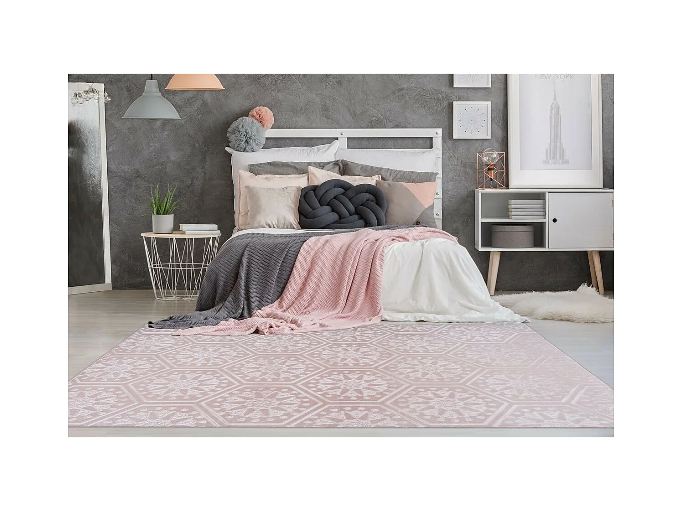 Tapis Géométrique à Poils Courts "Manolya" Rose 120 x 170 cm