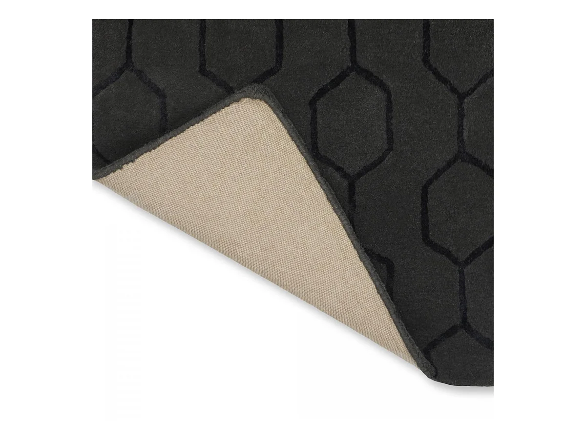 tapis chambre 170x240 fait à la main en laine noir rectangle motif faux uni GIO