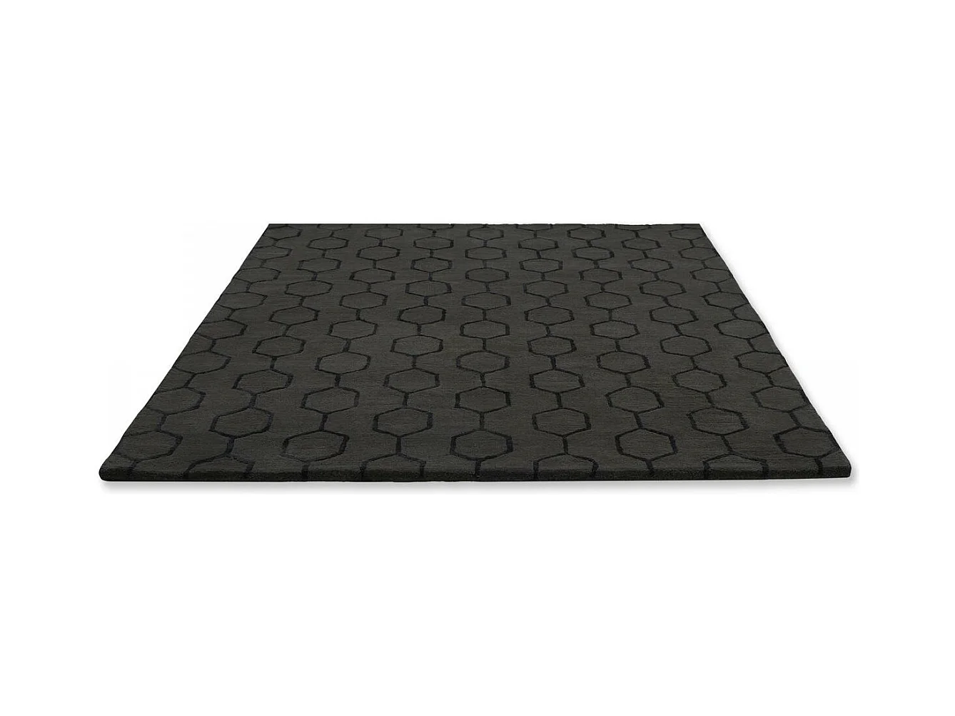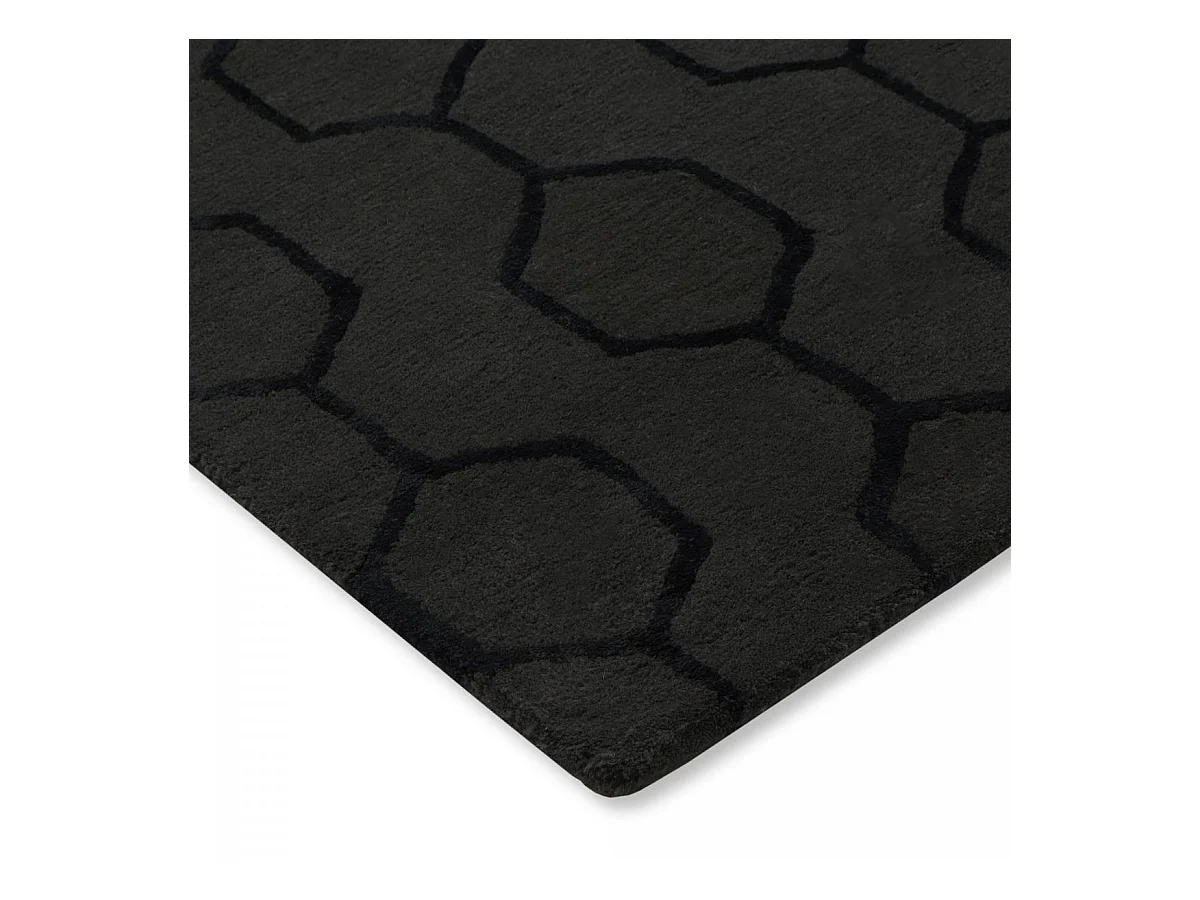 tapis open space 200x280 fait à la main en laine noir rectangle motif faux uni