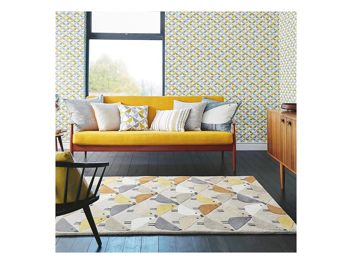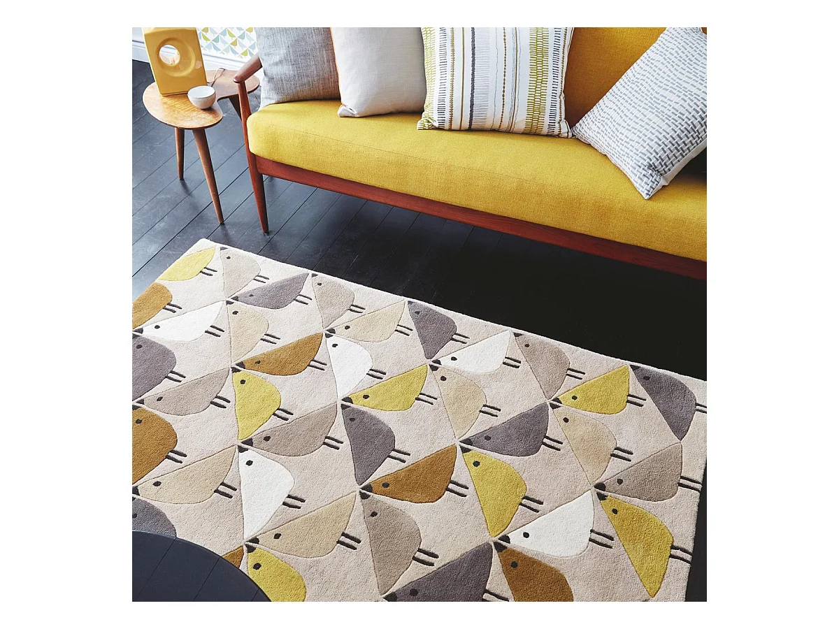 tapis chambre 120x180 fait à la main en laine gris et jaune motif animaux