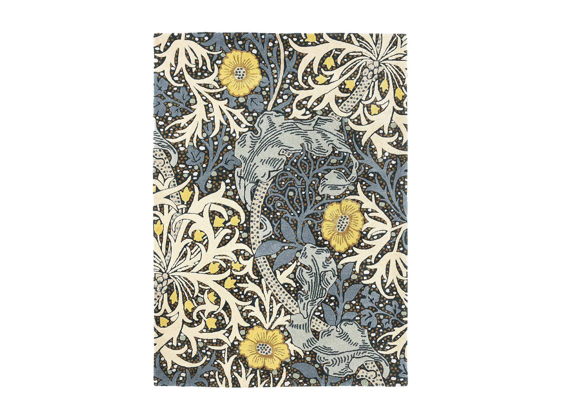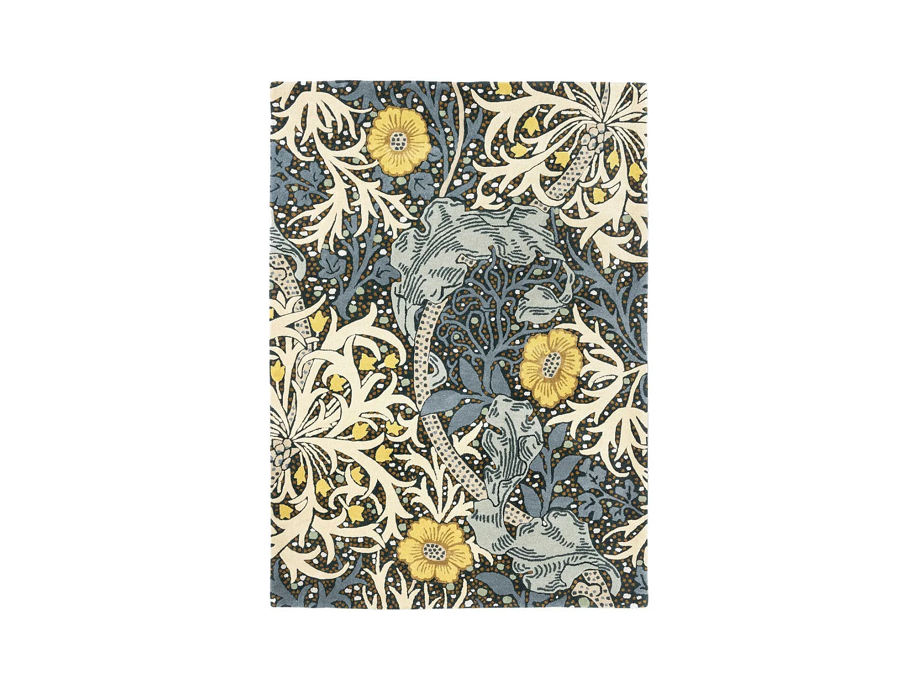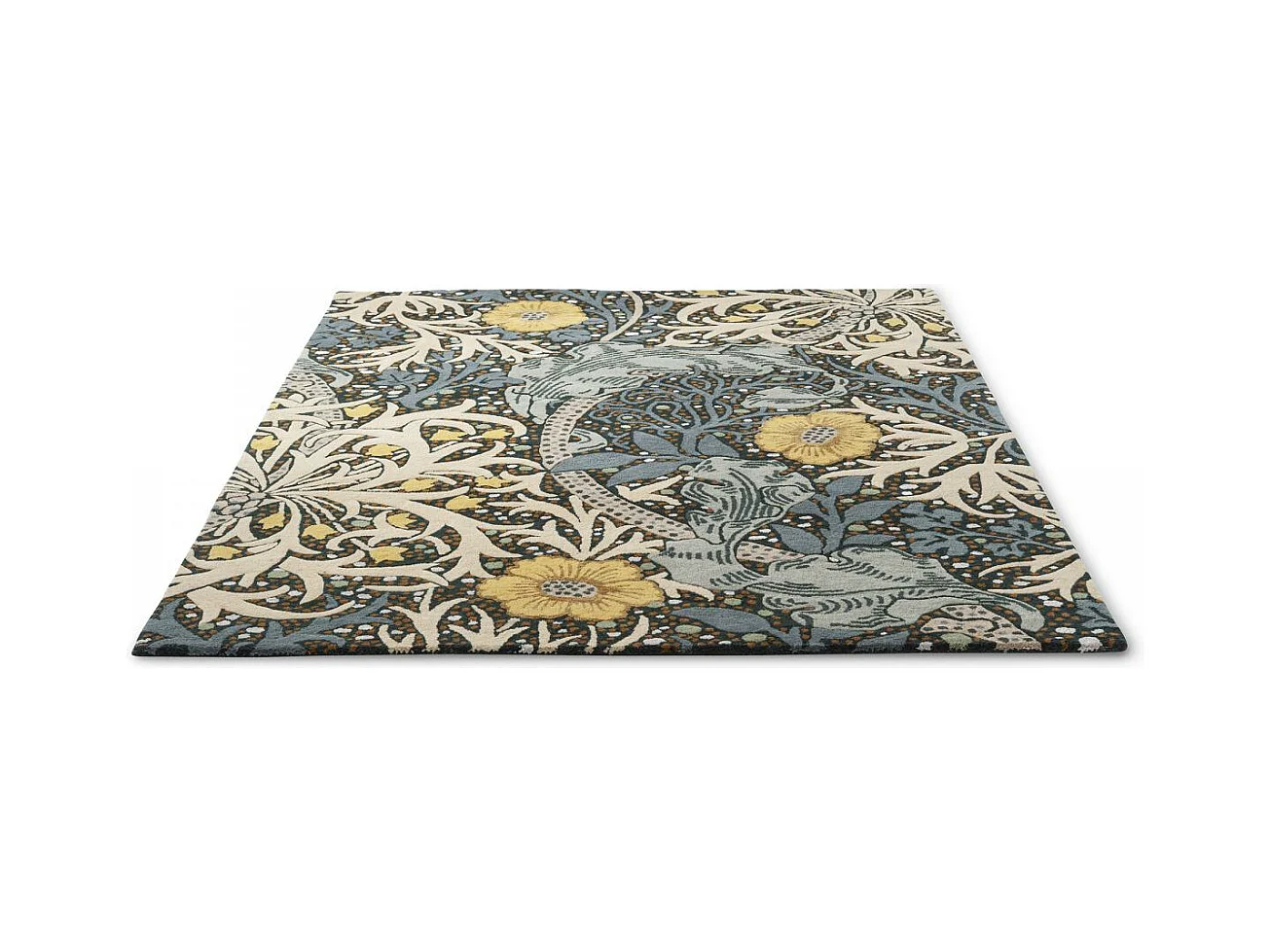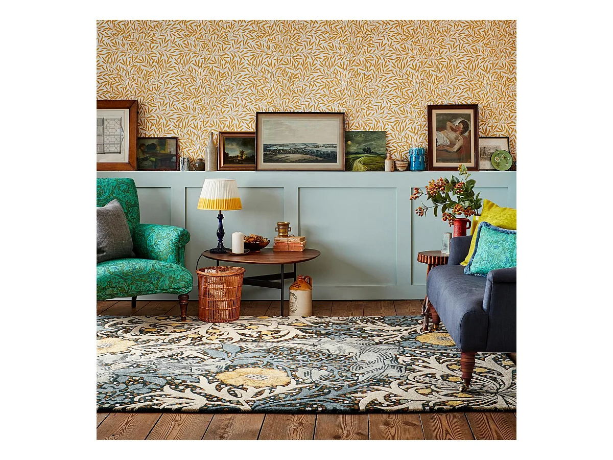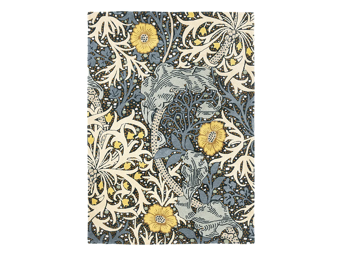 tapis entrée 140x200 fait à la main en laine bleu et jaune motif floral