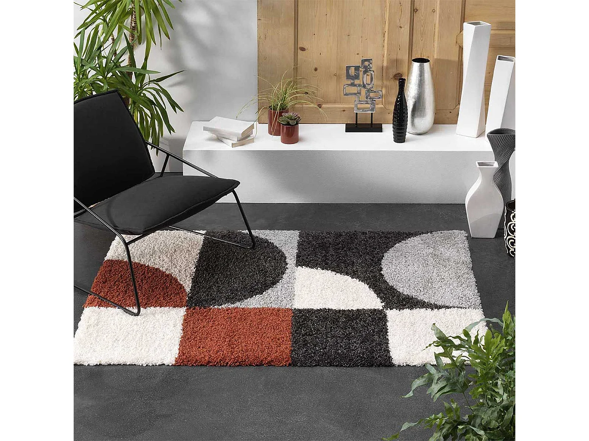 tapis chambre 120x170 tissé multicolore rectangle motif damier CARREAUX
