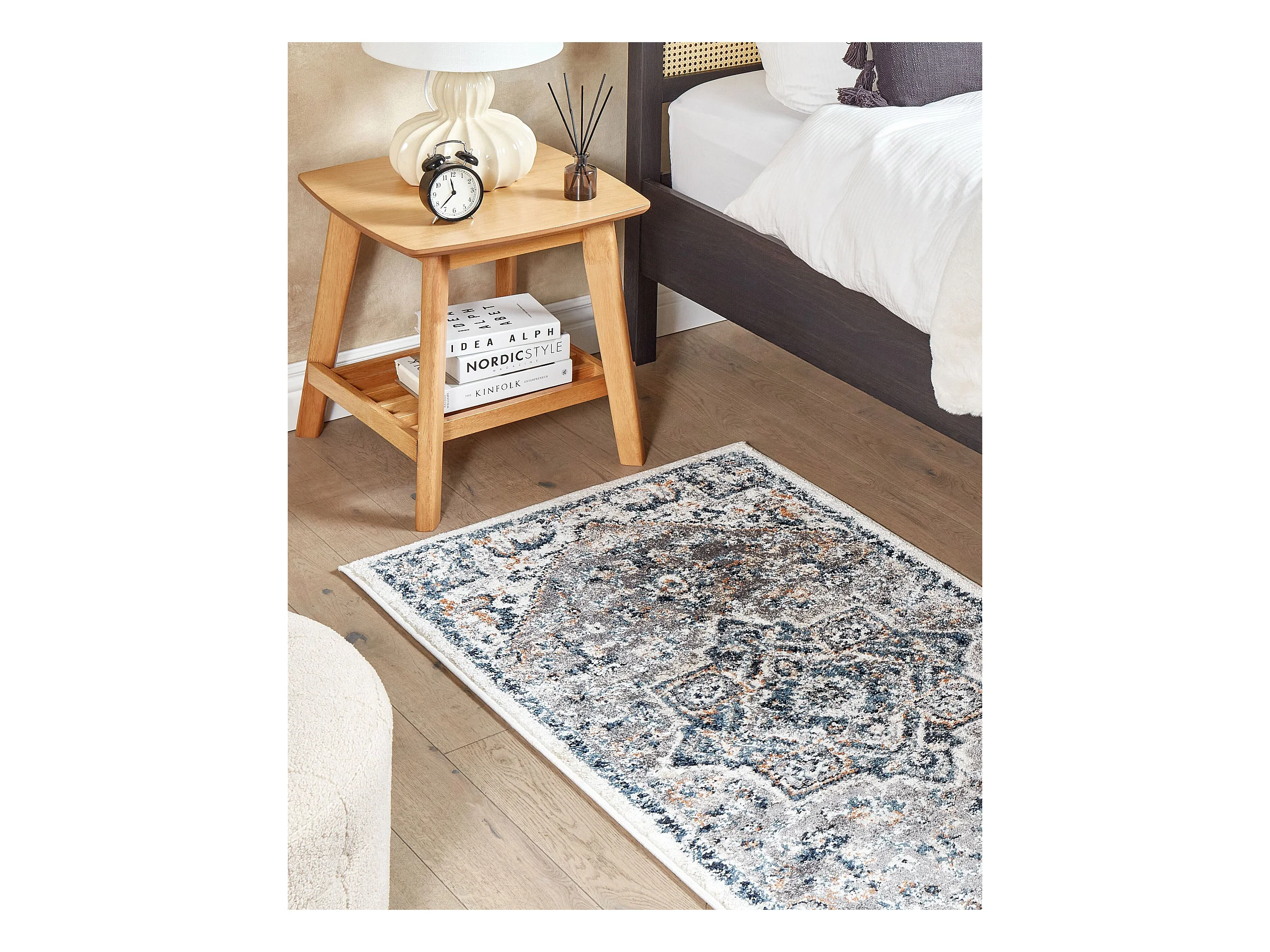 tapis chambre 120x170 tissé gris et bleu rectangle motif oriental JOKI