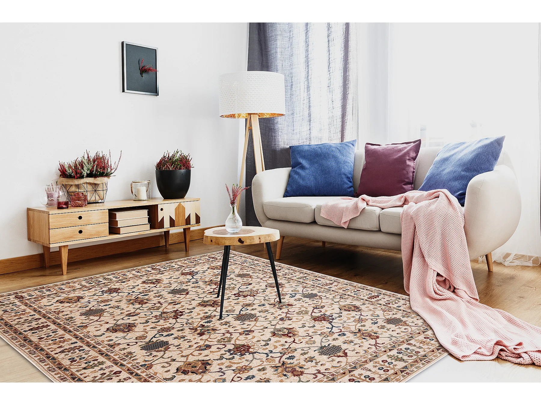 Tapis NAIN Ornement, cadre, 1028/51053 beige / bordeaux / bleu 160x230 cm