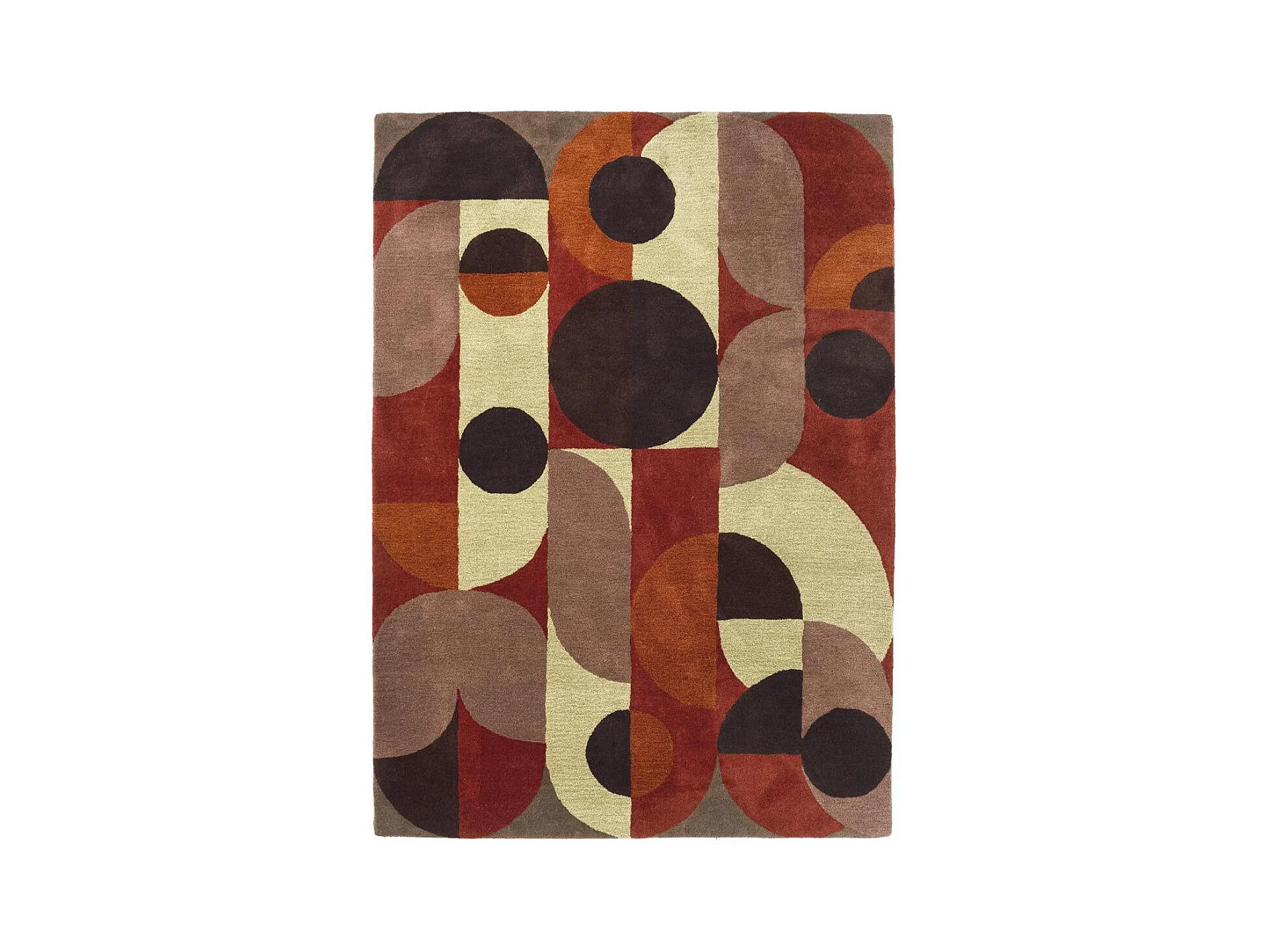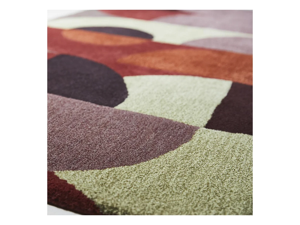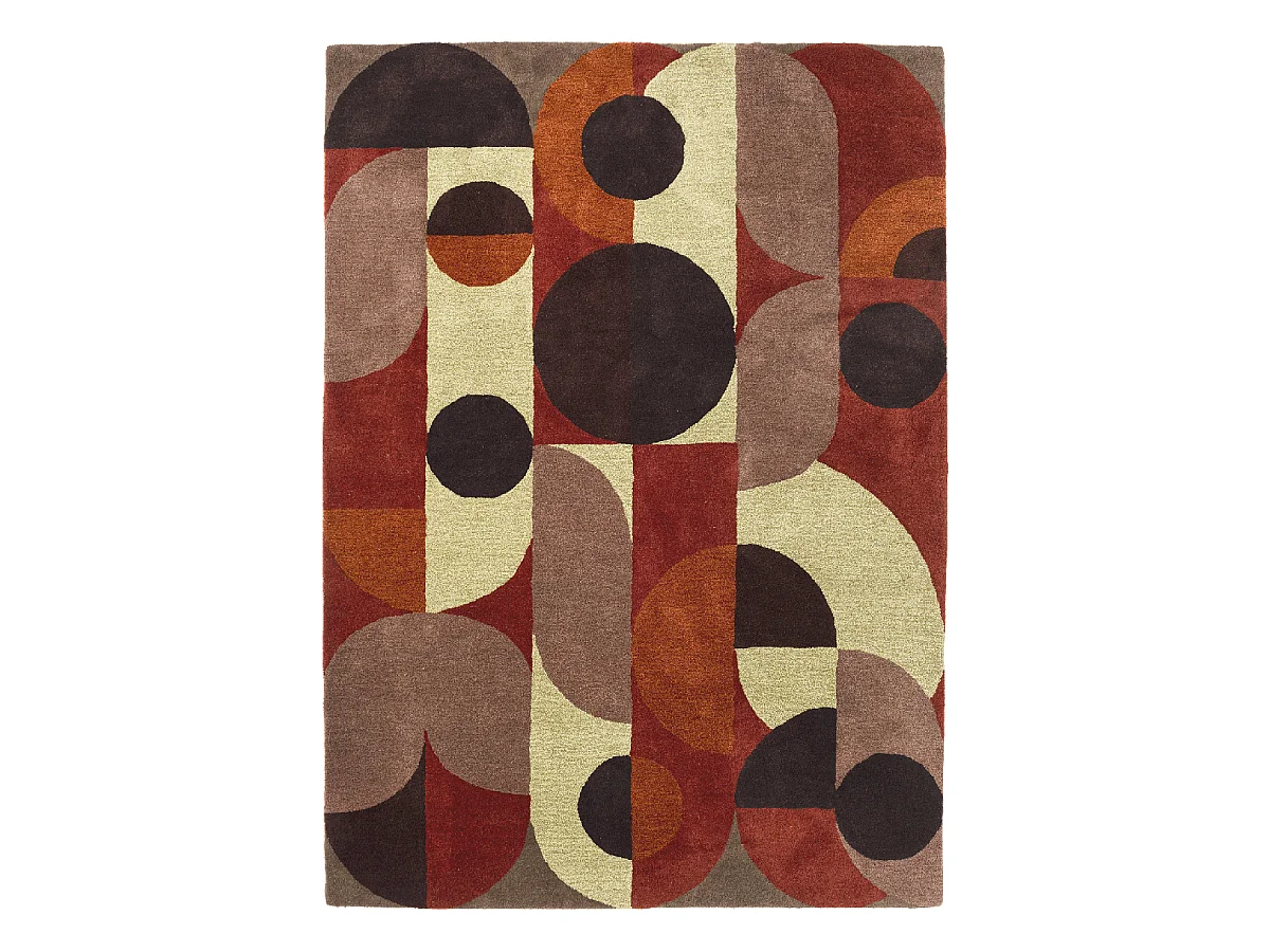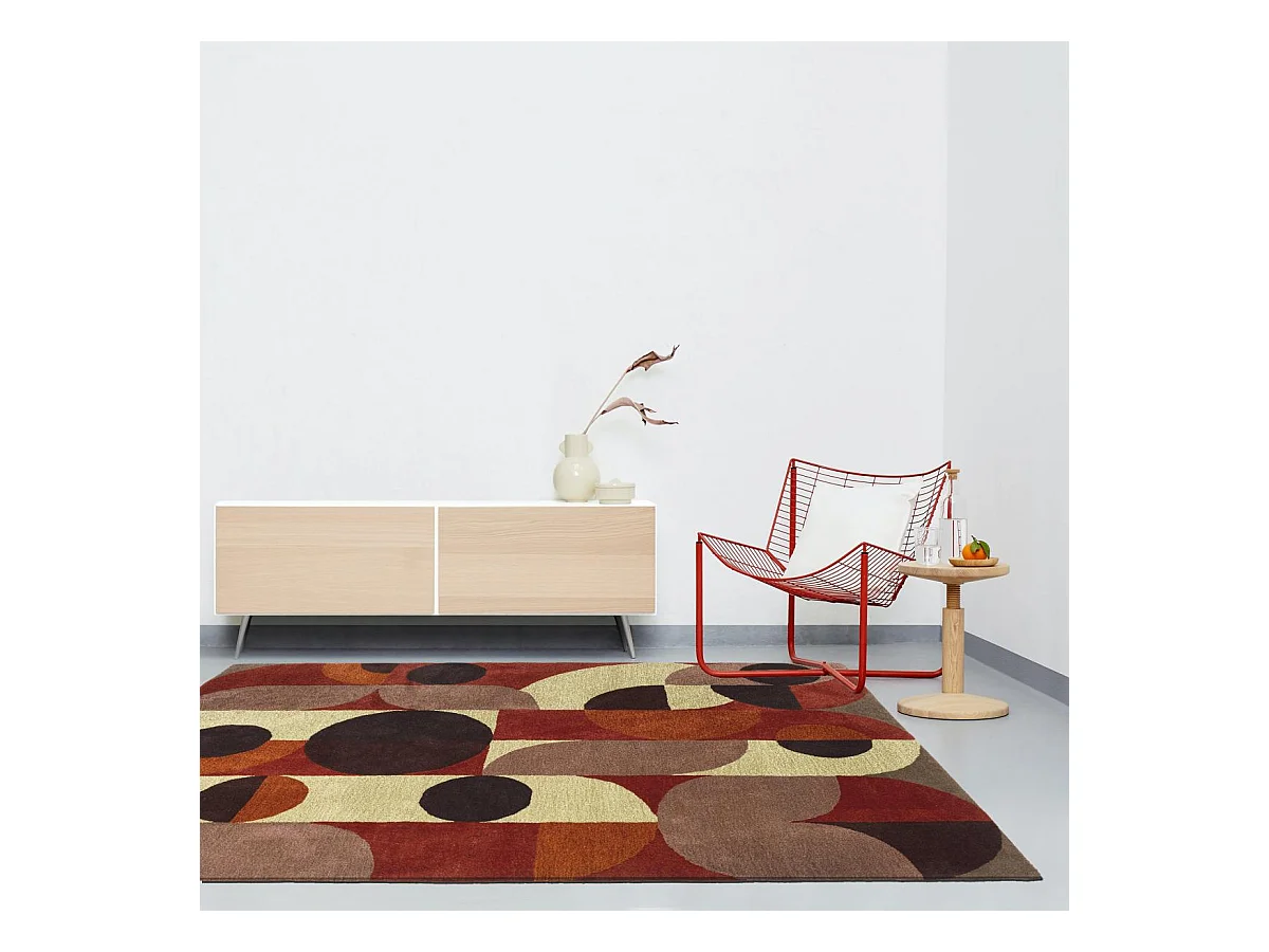 tapis open space 200x280 fait à la main en laine rouge et orange motif seventies