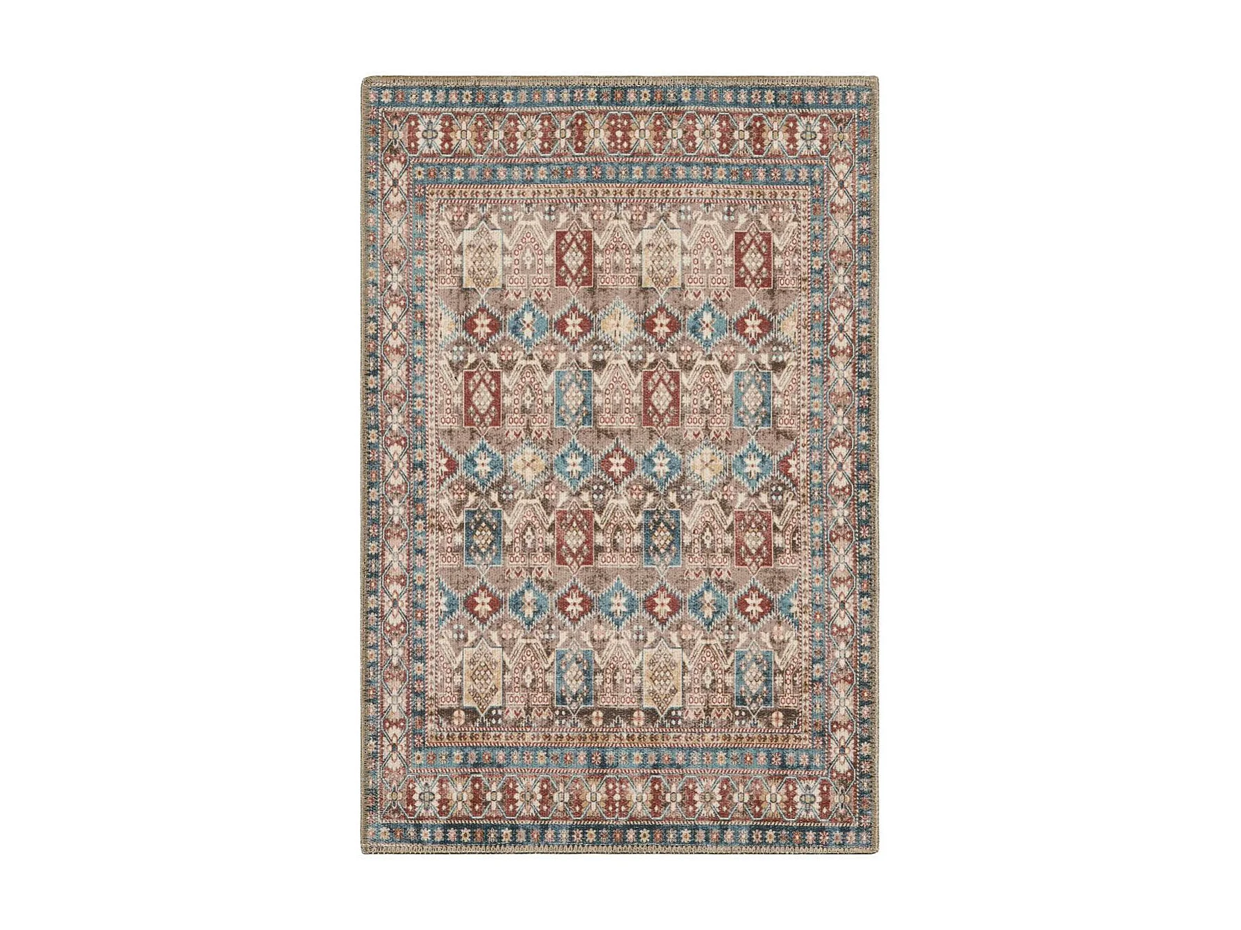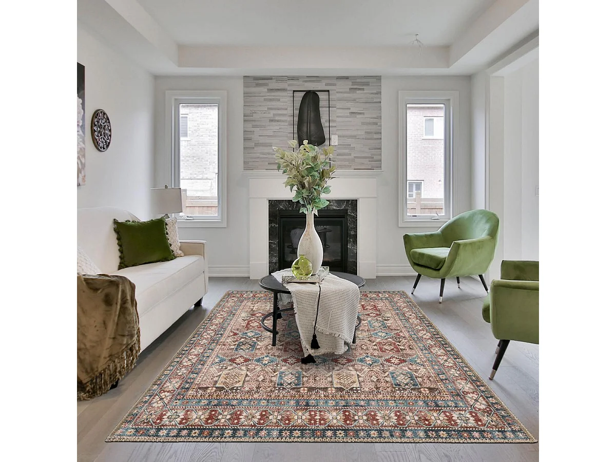 Tapis orient 67x100 rectangle rouge et bleu tissé motif classique ORTAGE A