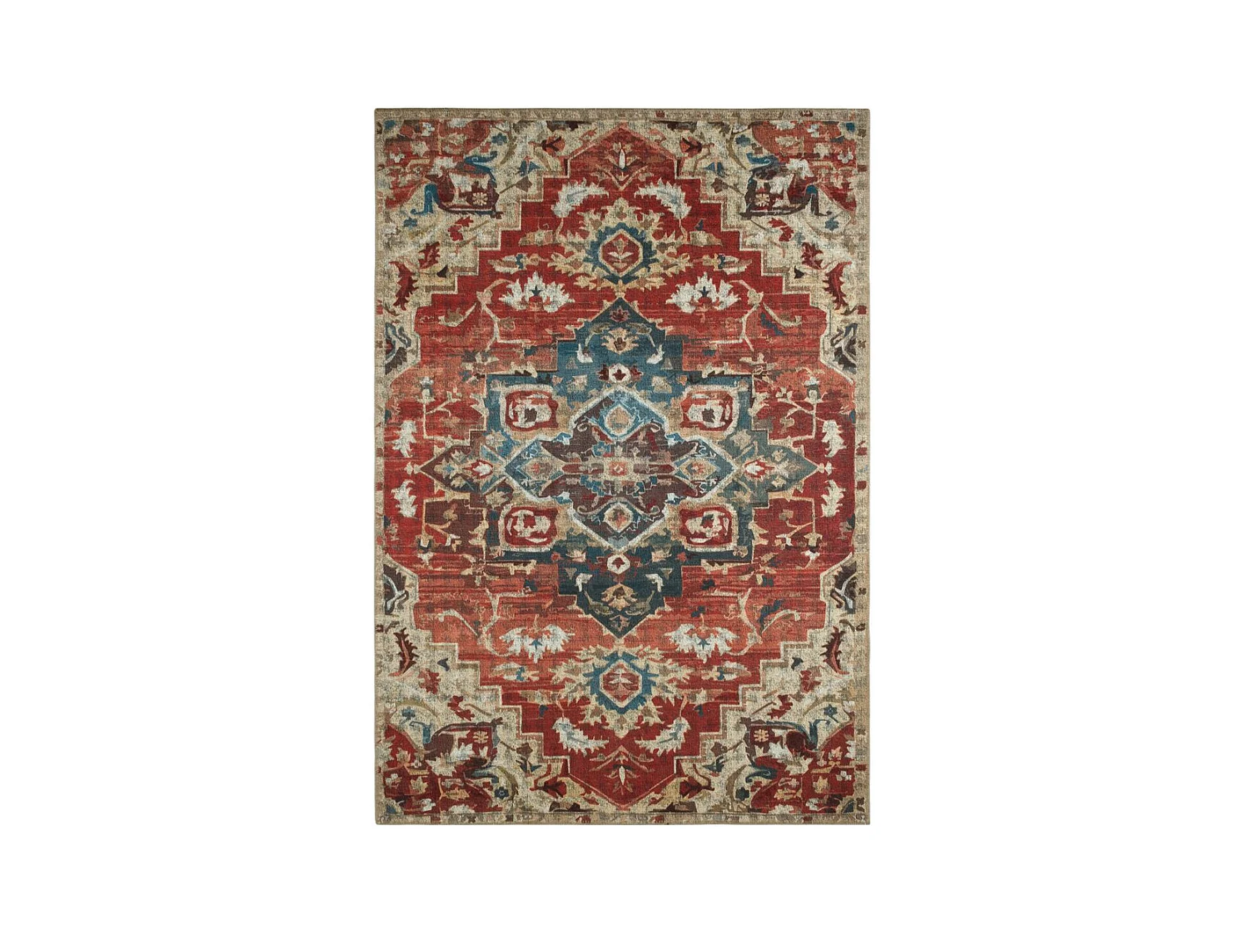 Tapis orient 80x150 rectangle rouge et beige tissé motif classique MEDA B