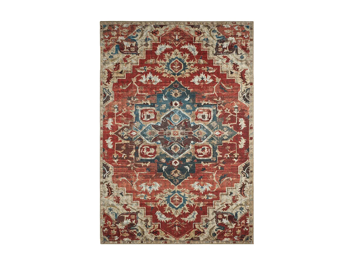 tapis chambre 160x225 tissé crème et rouge rectangle motif oriental Baia