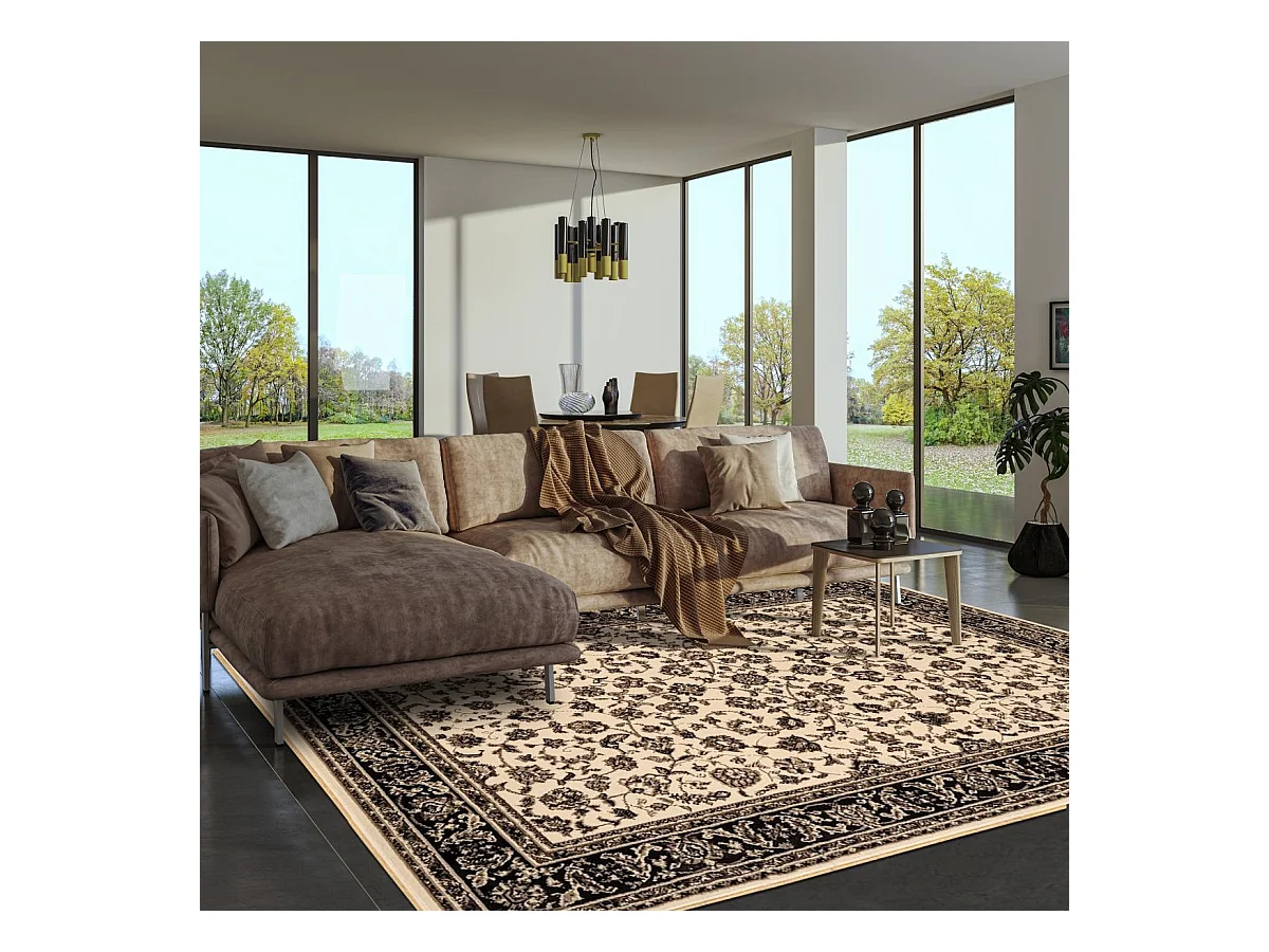 Tapis orient 200x290 rectangle beige et noir tissé motif traditionnel TIBRICA