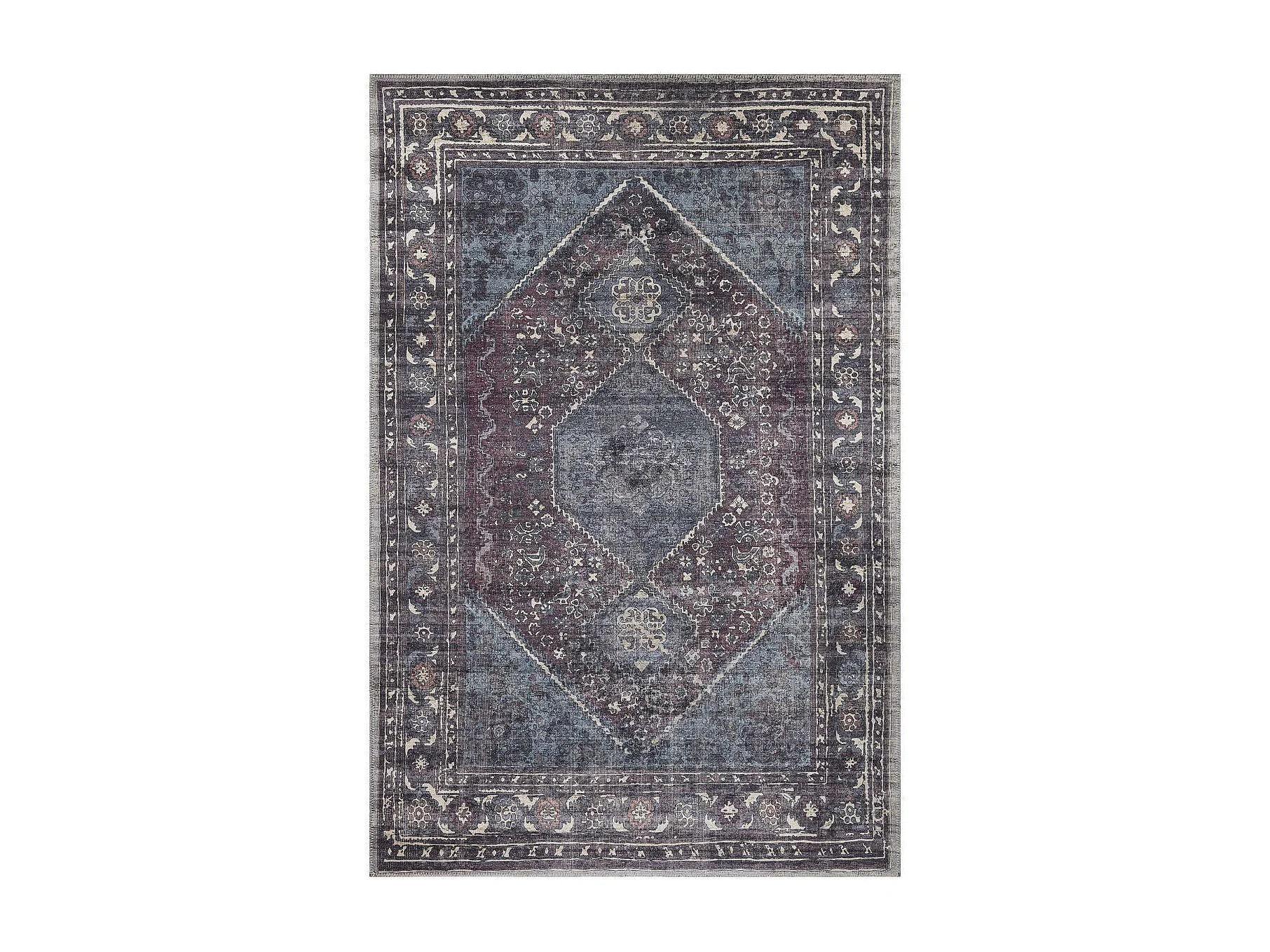 Tapis oriental 150x230 rectangle blue et gris tissé motif ethnique GASHGAI