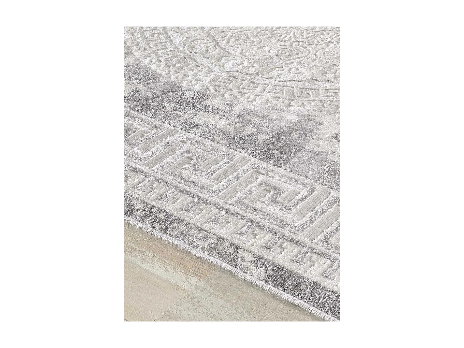 Tapis oriental 160x220 rectangle gris clair tissé motif ancestral LYN7 ALAN