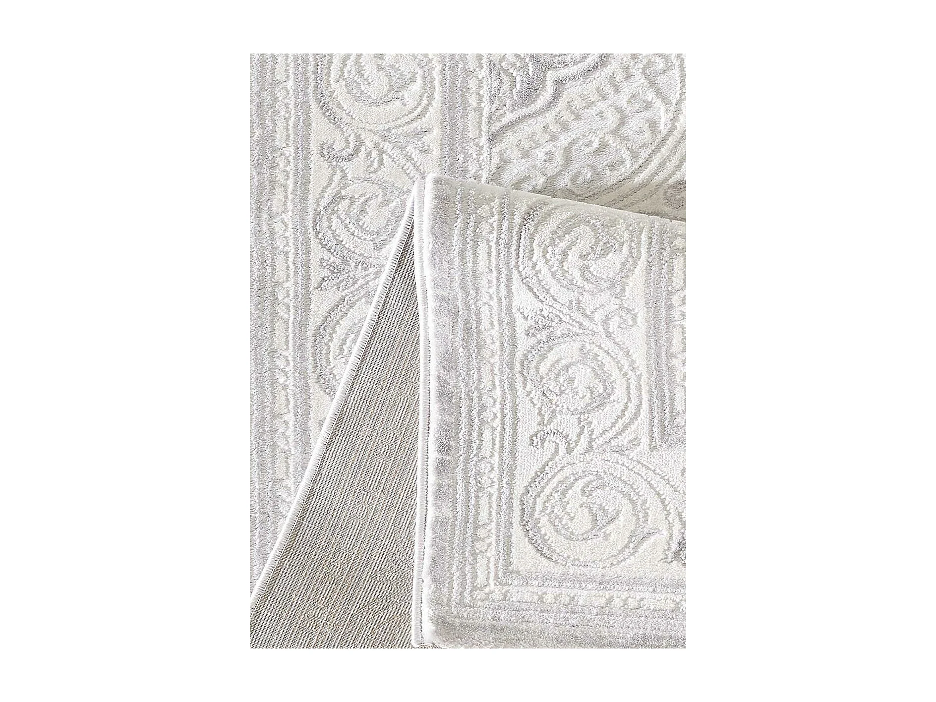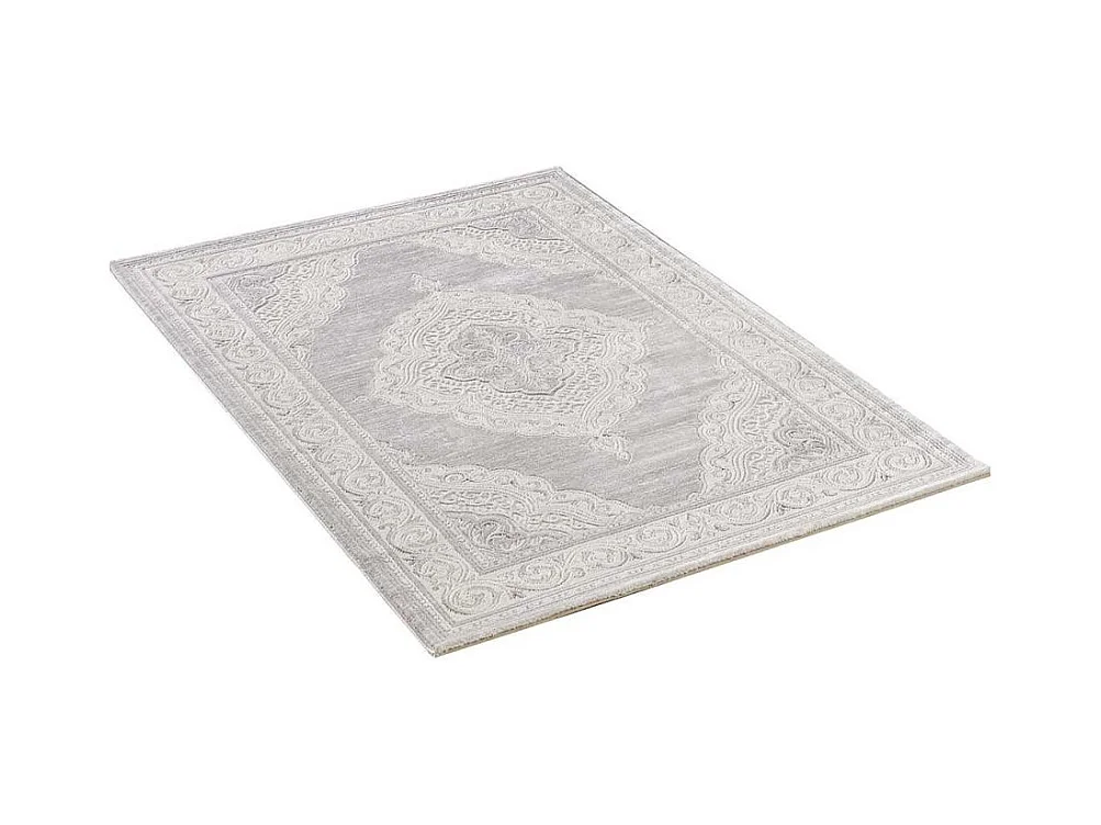 Tapis oriental 160x220 rectangle gris clair tissé motif ancestral LYN7 FALAN