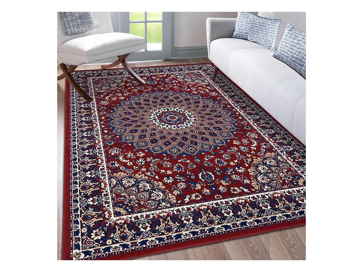 Tapis oriental 240x330 rectangle crème et rouge tissé motif ethnique LYN1 ROSOR