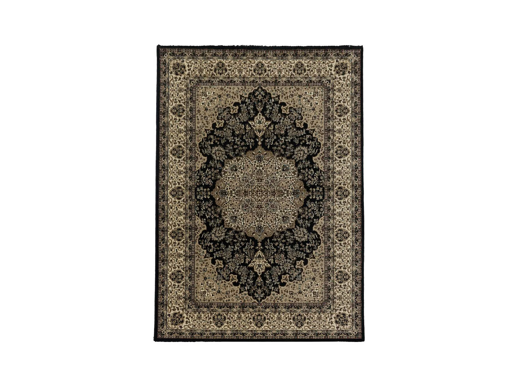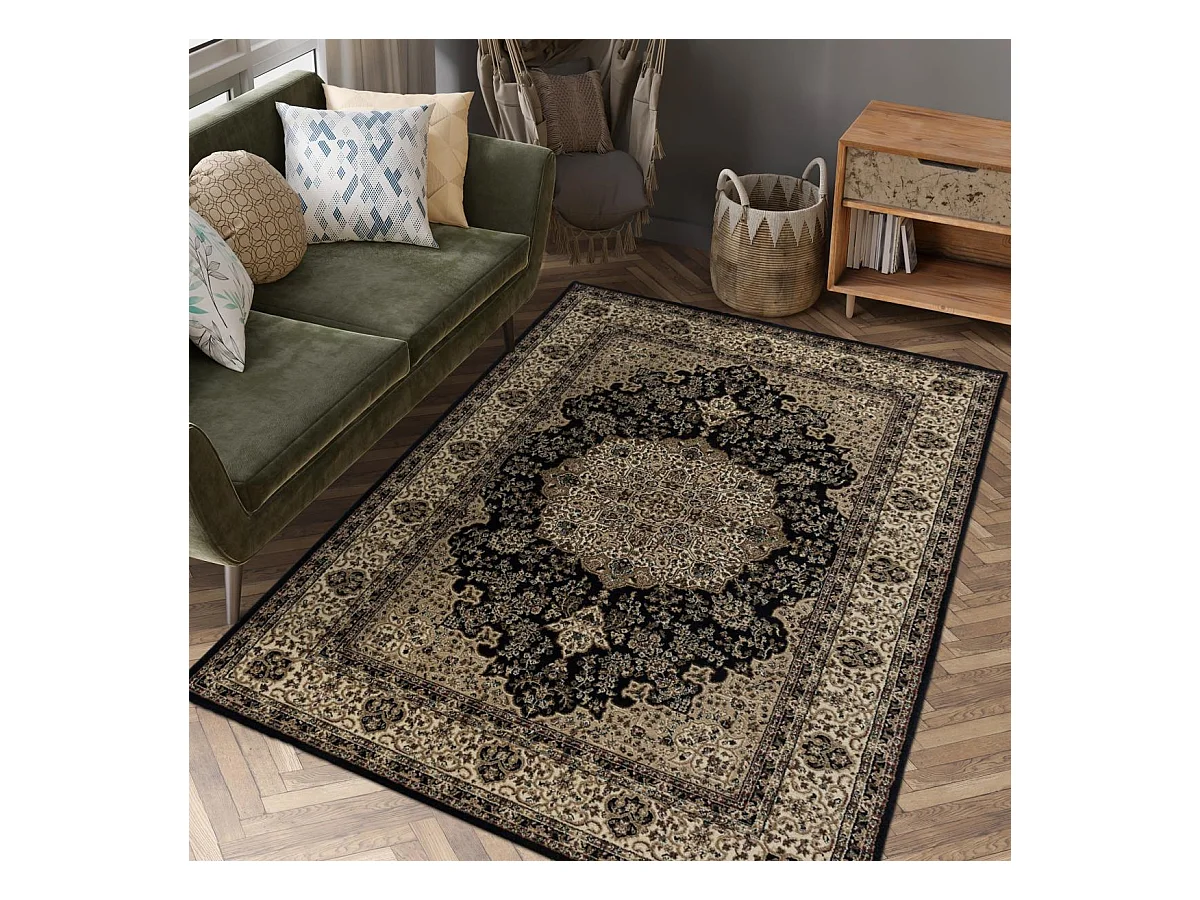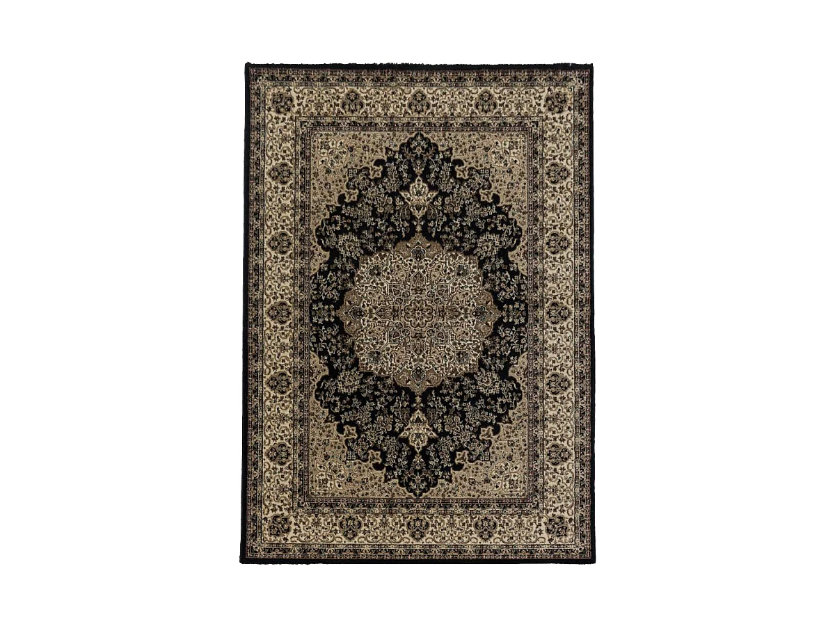Tapis orient 240x340 rectangle noir et beige tissé motif classique TIBRICAM