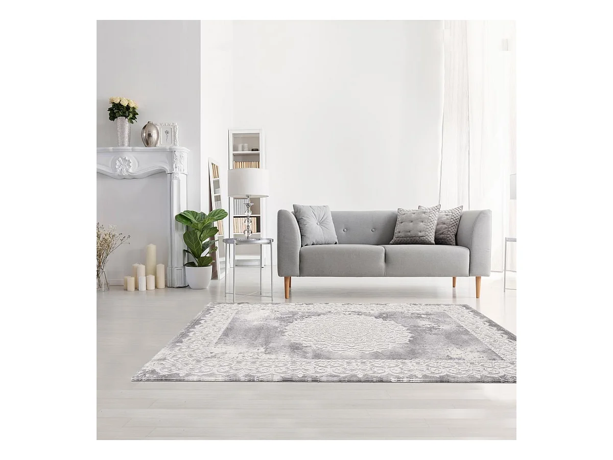 Tapis oriental 80x150 rectangle gris clair tissé motif ancestral LYN7 BALROD