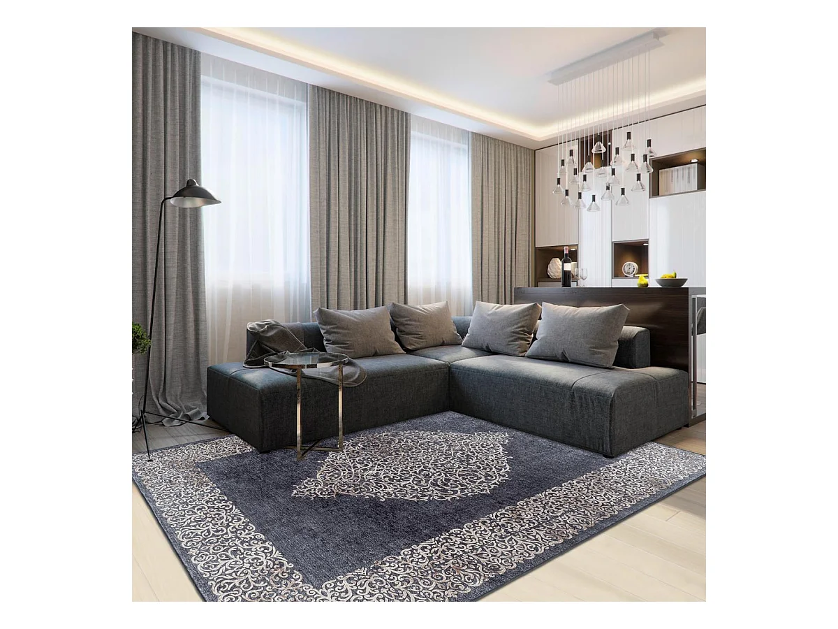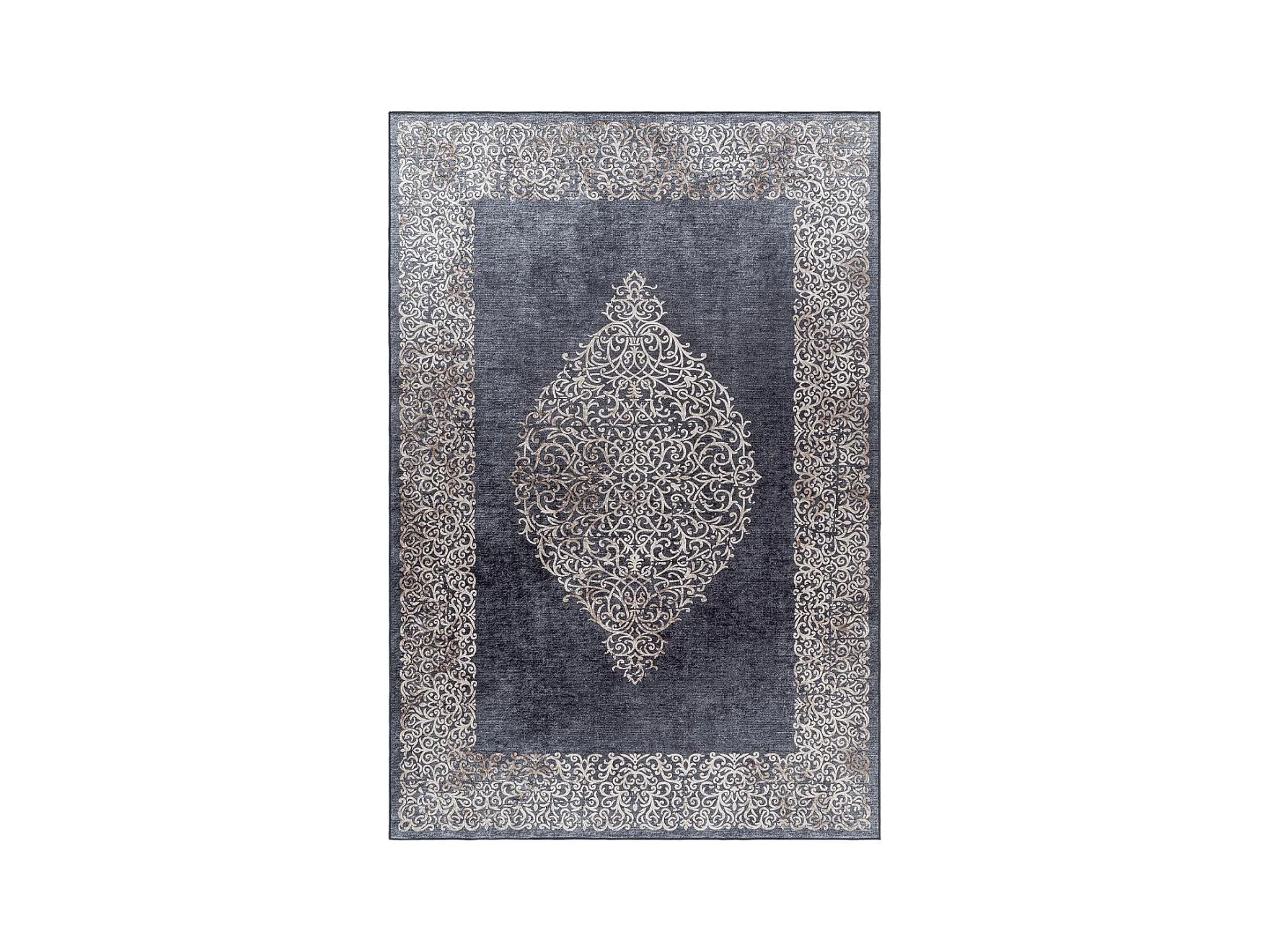 Tapis oriental 120x170 rectangle noir tissé motif ethnique LYN1 VINTOR