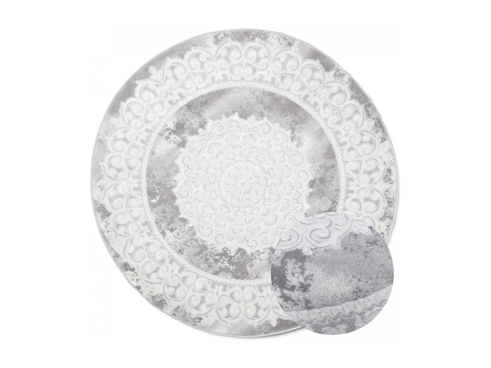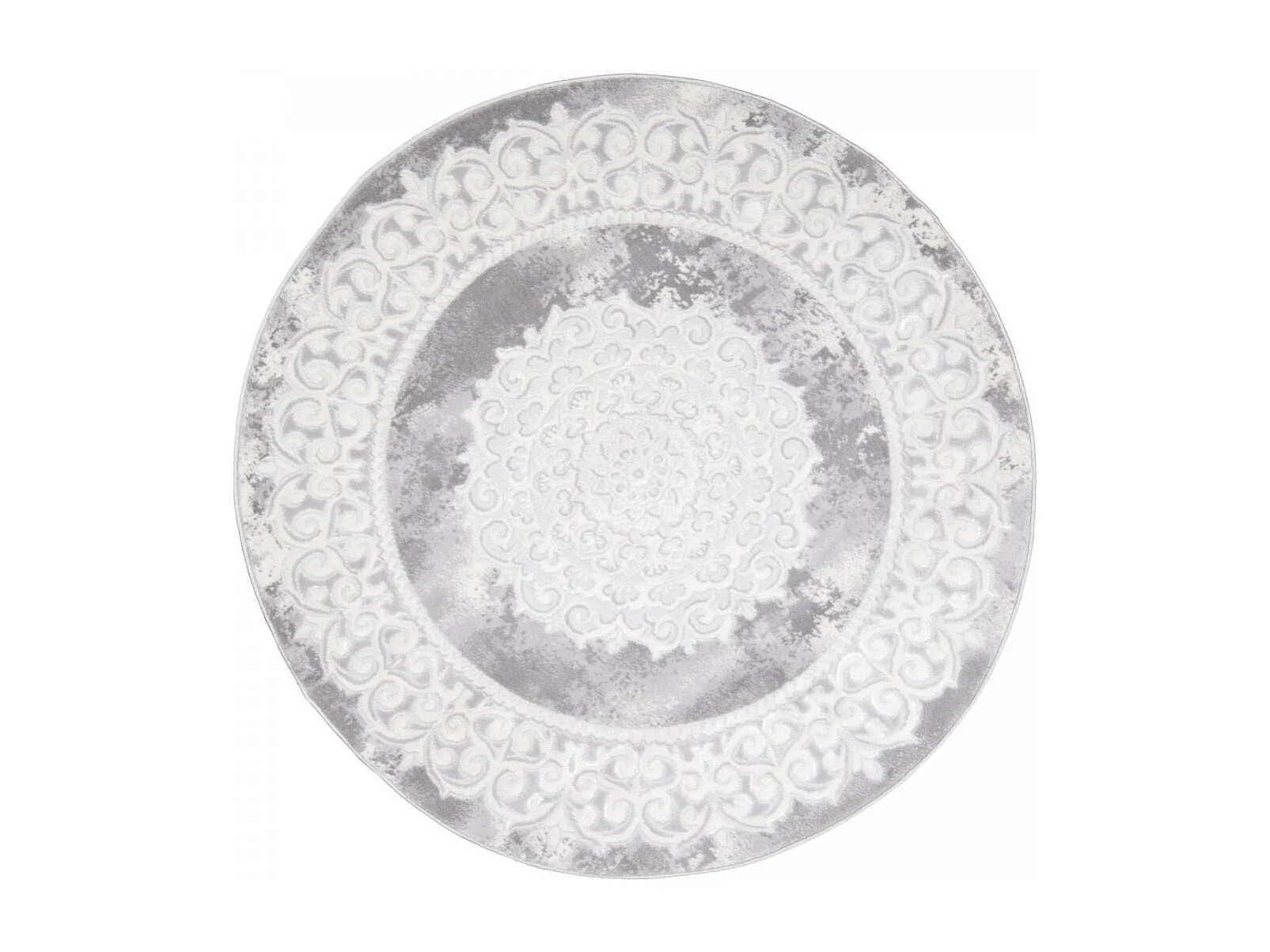 Tapis oriental Ø140cm rond gris clair tissé motif ancestral LYN7 BALROD