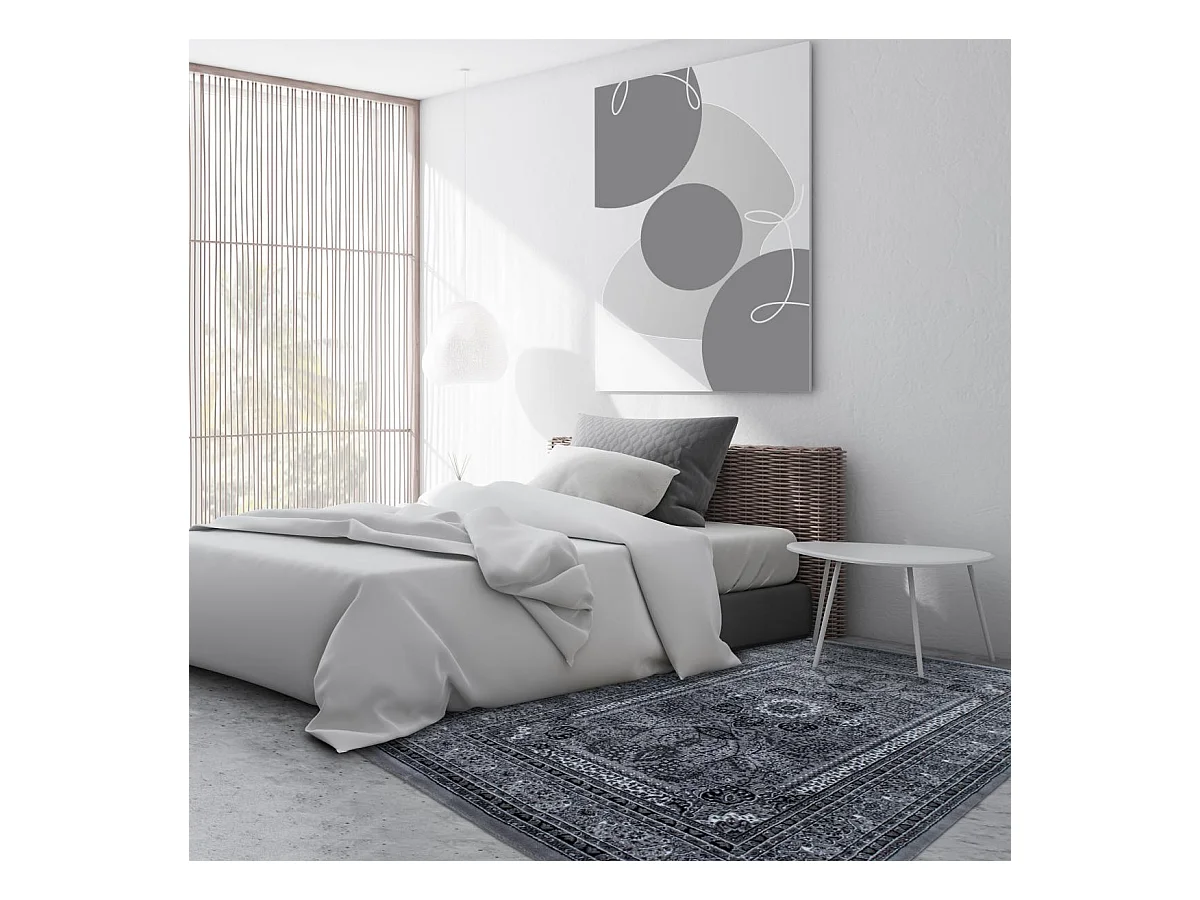tapis chambre 80x150 tissé gris rectangle motif oriental LUMIN 1