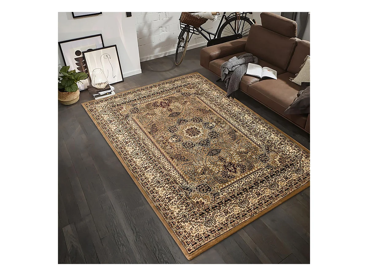 Tapis orient 300x400 rectangle beige tissé motifs orientaux BISKO