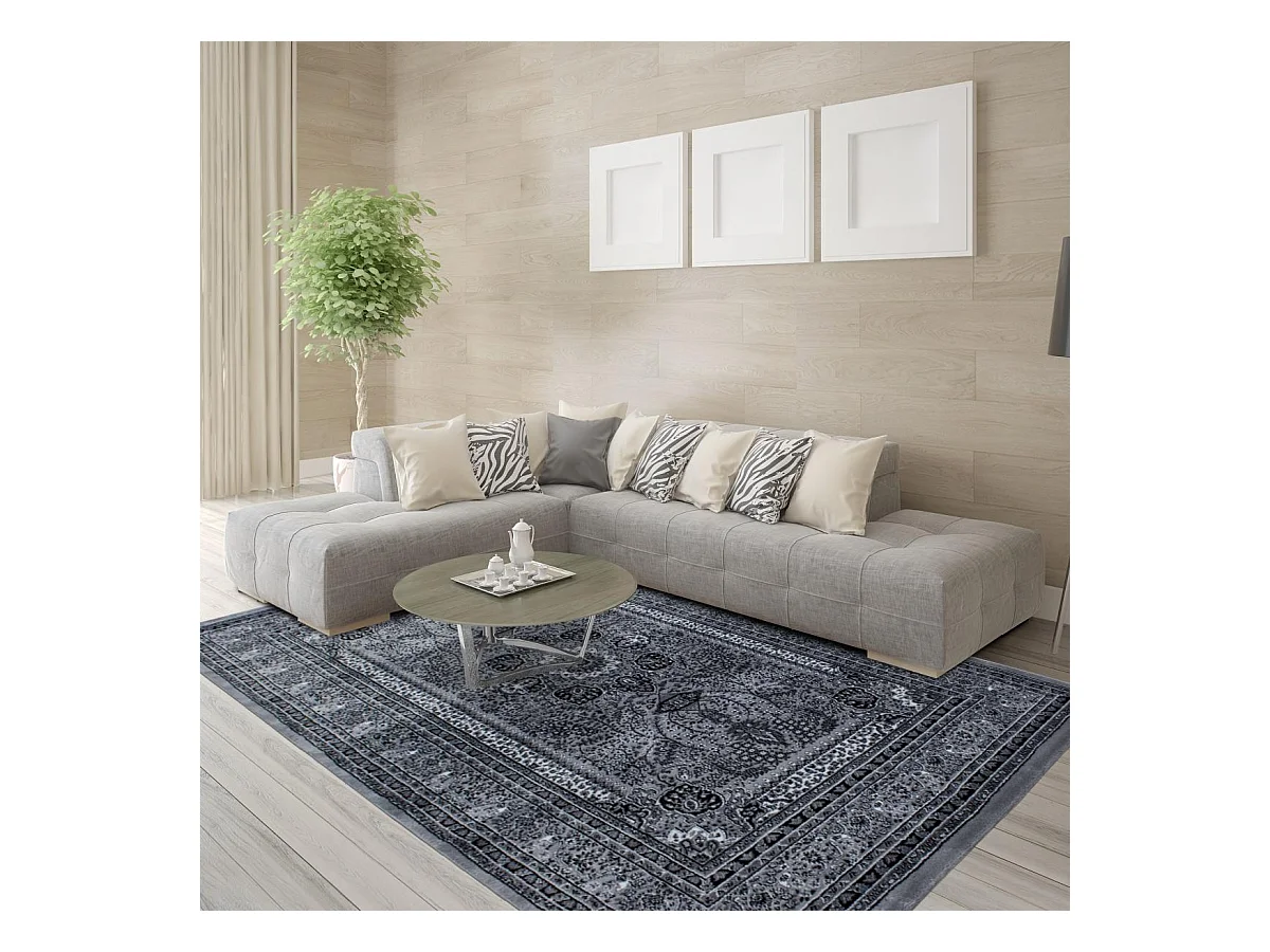 Tapis orient 300x400 rectangle gris tissé motifs orientaux BISKO