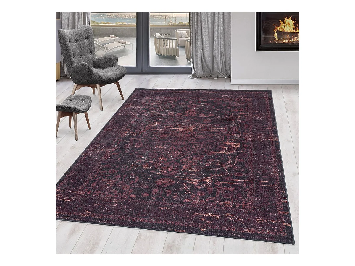 Tapis à bordure de style oriental 80x150 cm rouge multi Beatrice