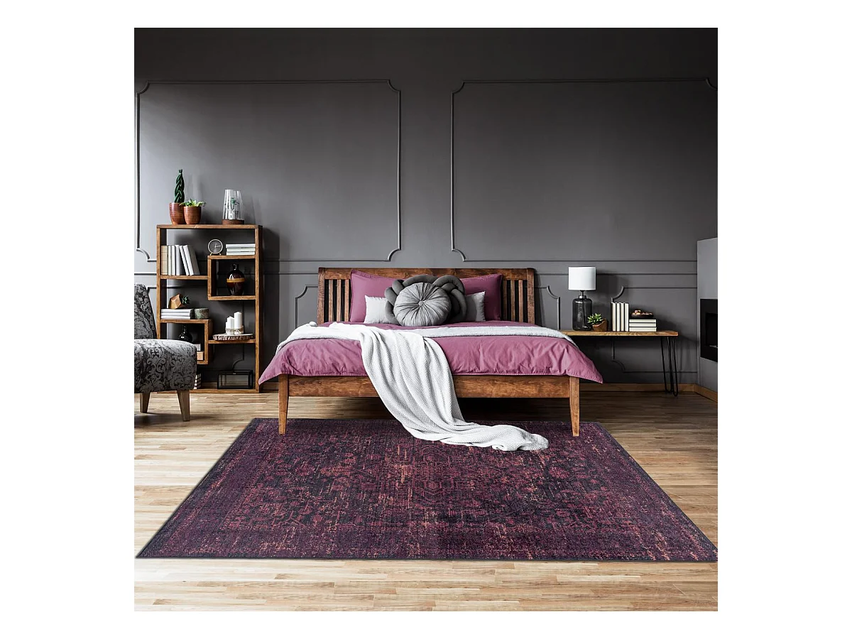 Tapis orient 80x150 rectangle rouge et noir tissé motif classique ALLOVER