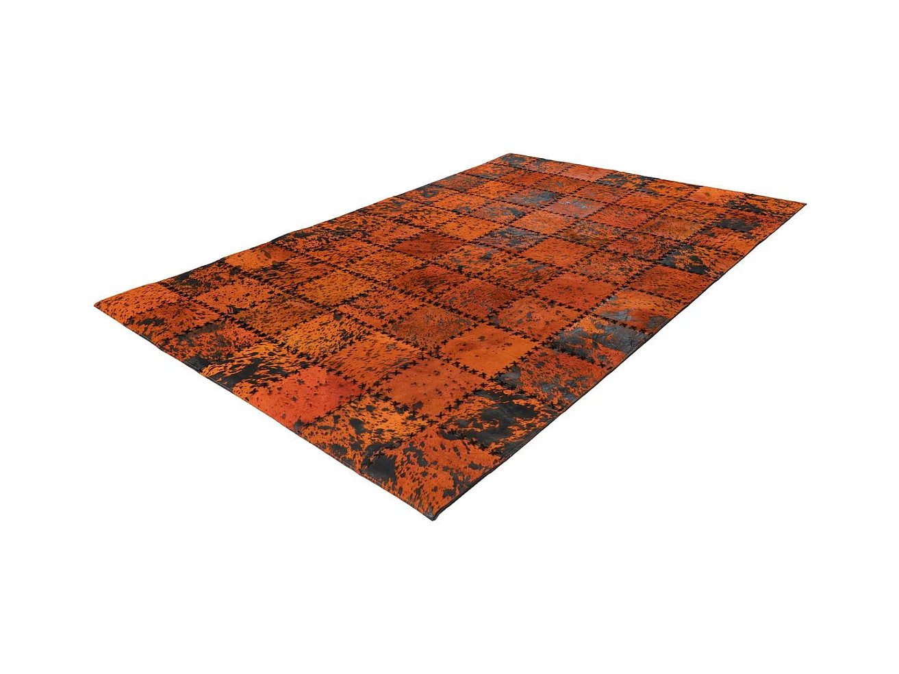 Tapis Patchwork en Cuir Fait Main "Voila" Orange 120 x 170 cm