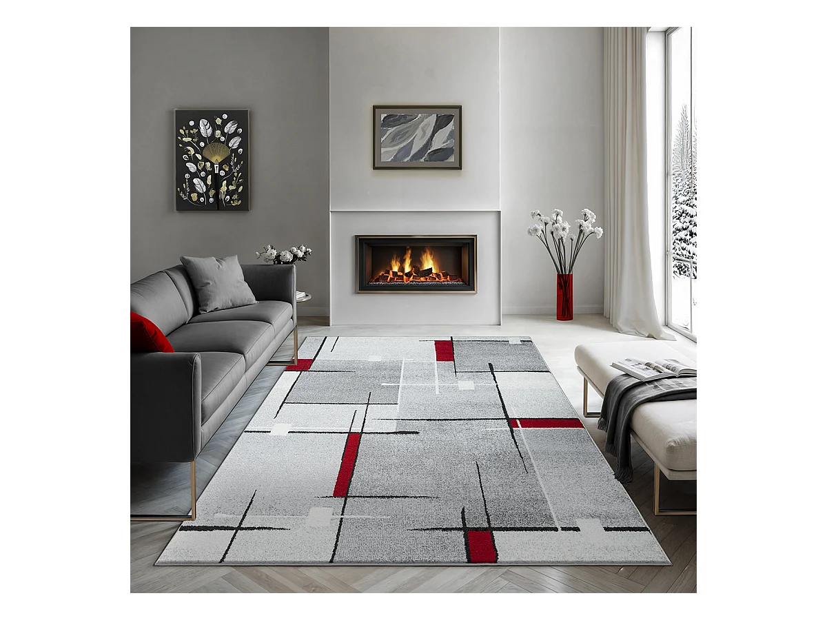 Tapis Pearl moderne salon poil court, Gris Rouge, 200 x 280 cm