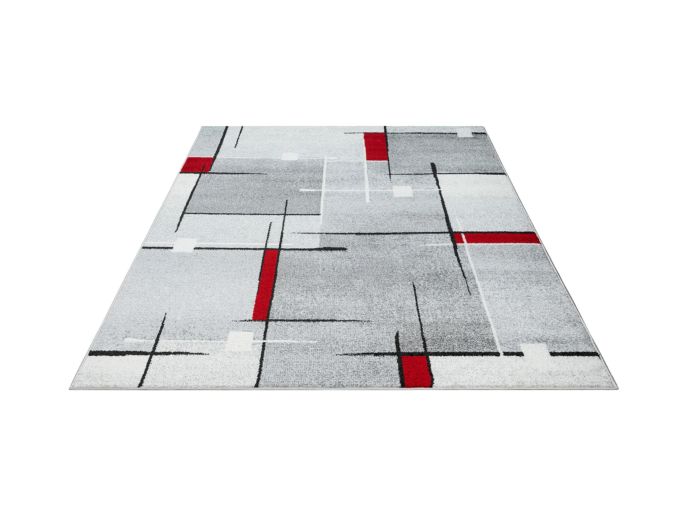 Tapis Pearl moderne salon poil court, Gris Rouge, 160 x 220 cm