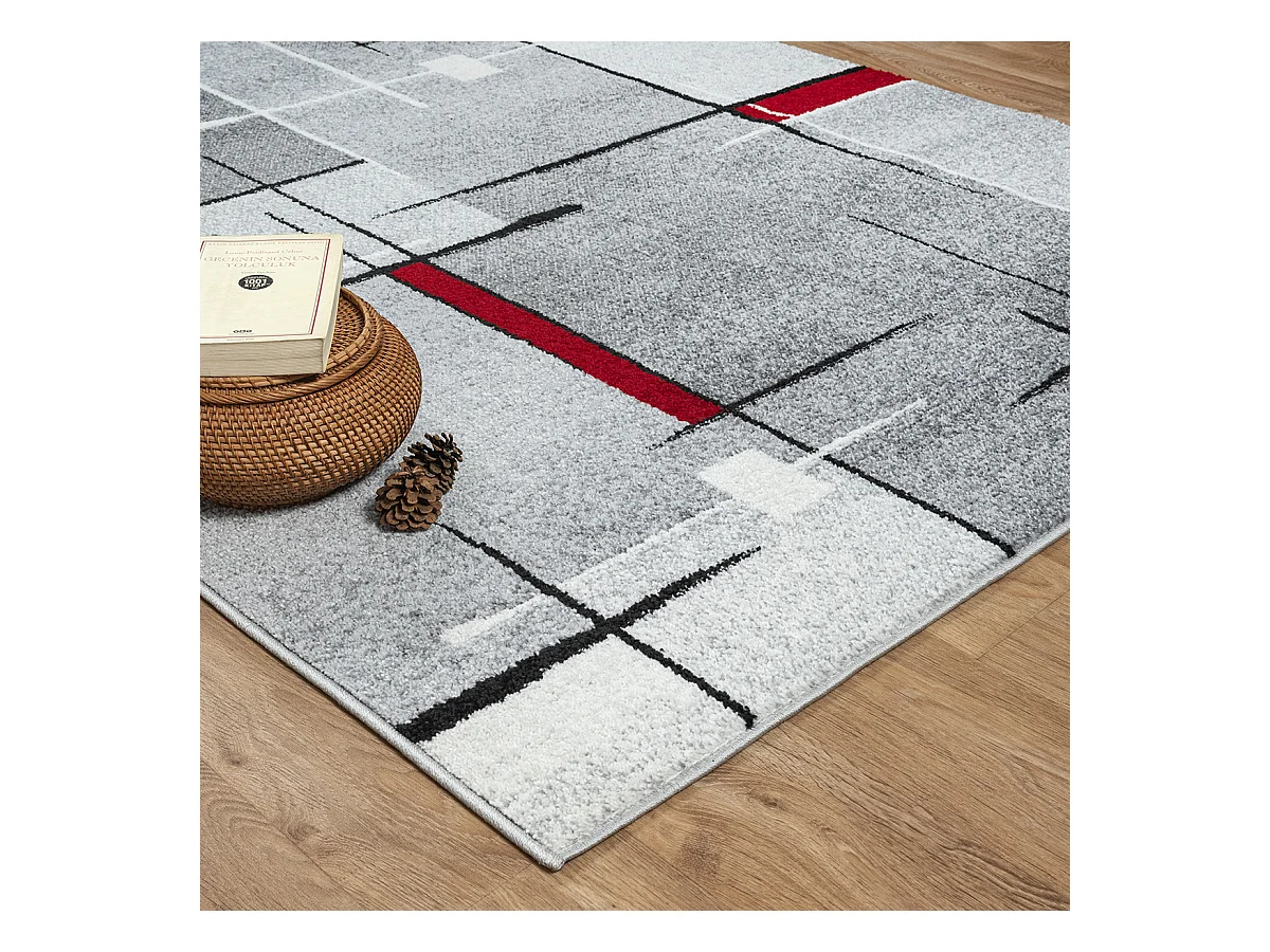 Tapis Pearl moderne salon découpe contour, Gris Rouge, 200 x 280 cm