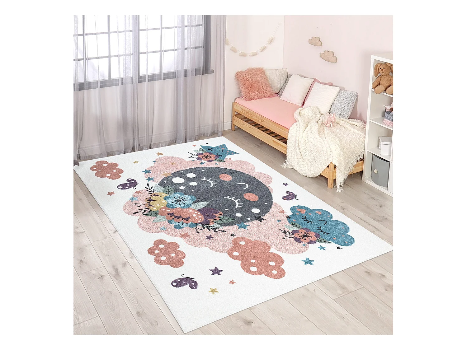 Tapis pour chambre d'enfant Crème Motif Nuages 80x150cm