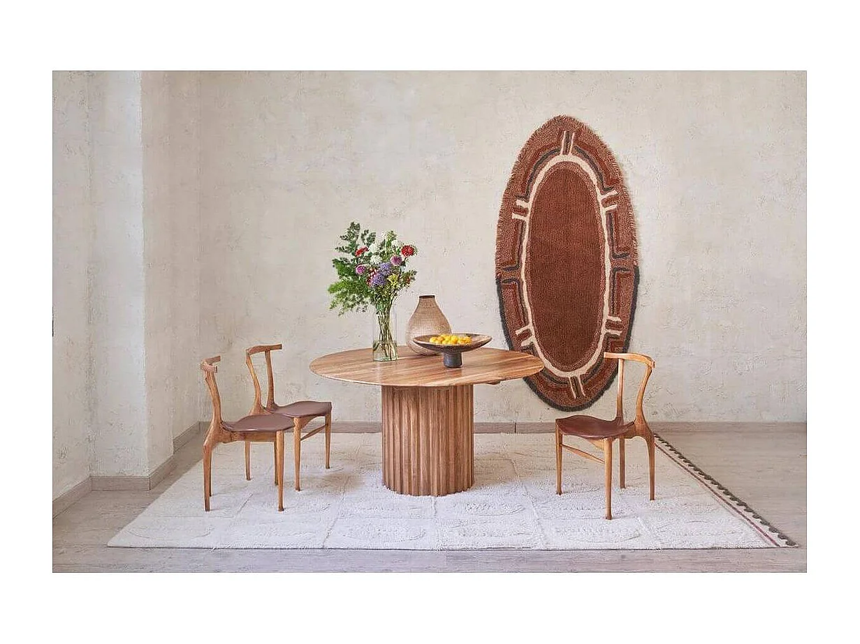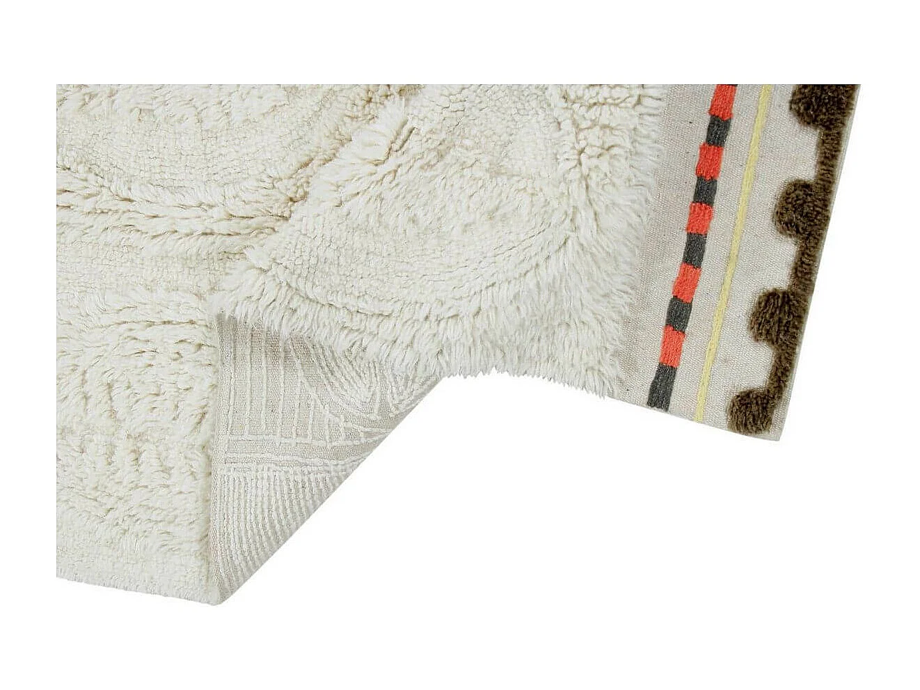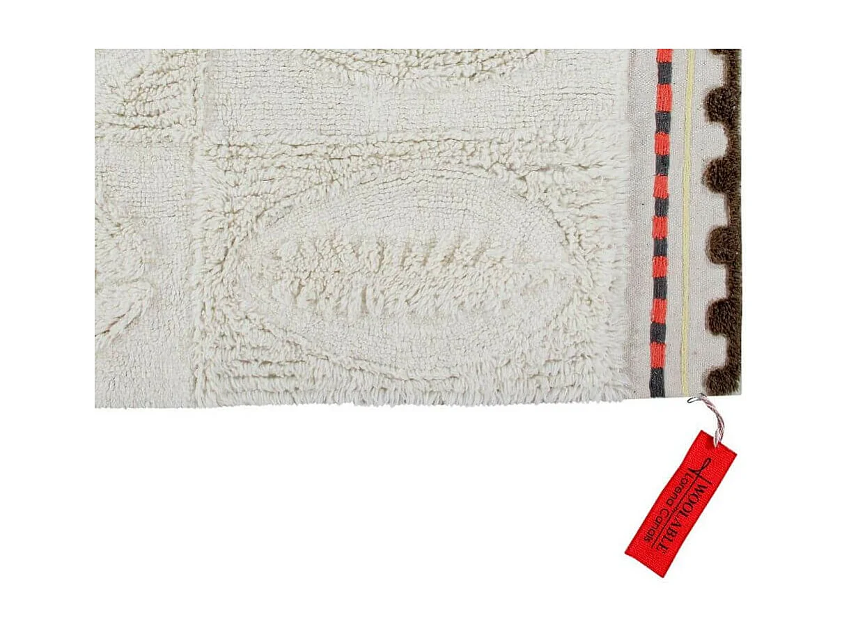 Tapis rectangle en laine ethnique lavable en machine crème Bahari Rectangulaire Design Fai