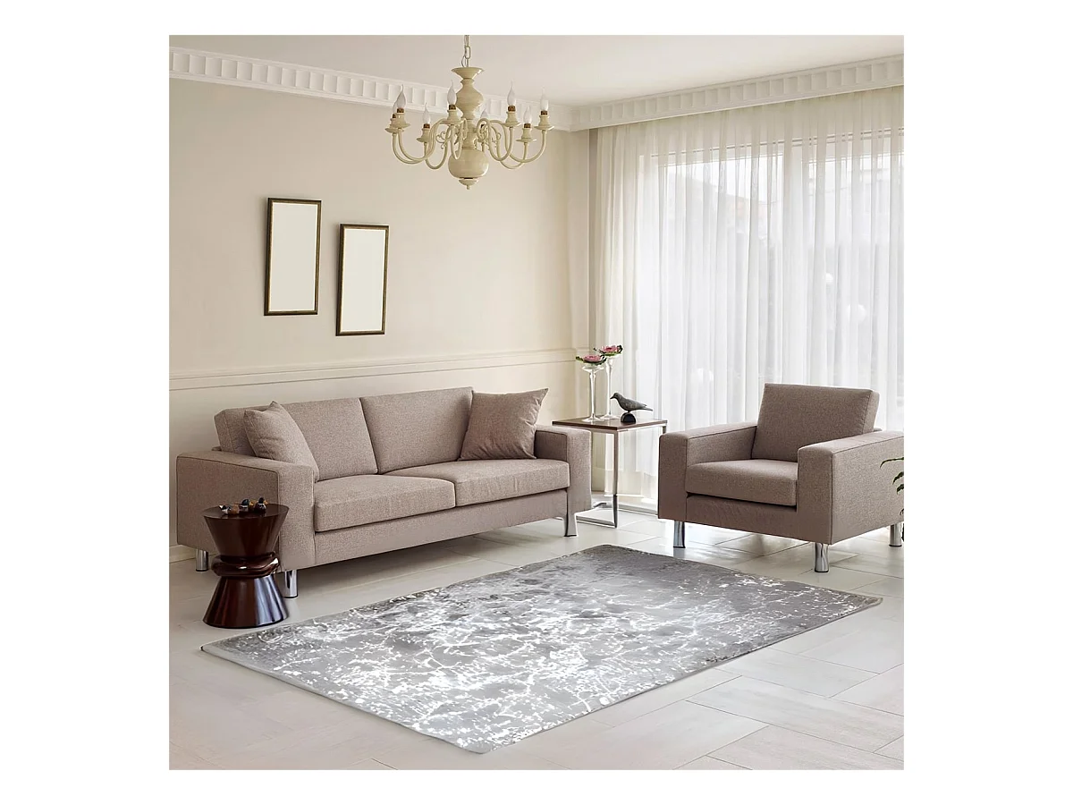 Tapis Rectangulaire 120x170cm Imitation Fourrure Effet Argenté - DARYS
