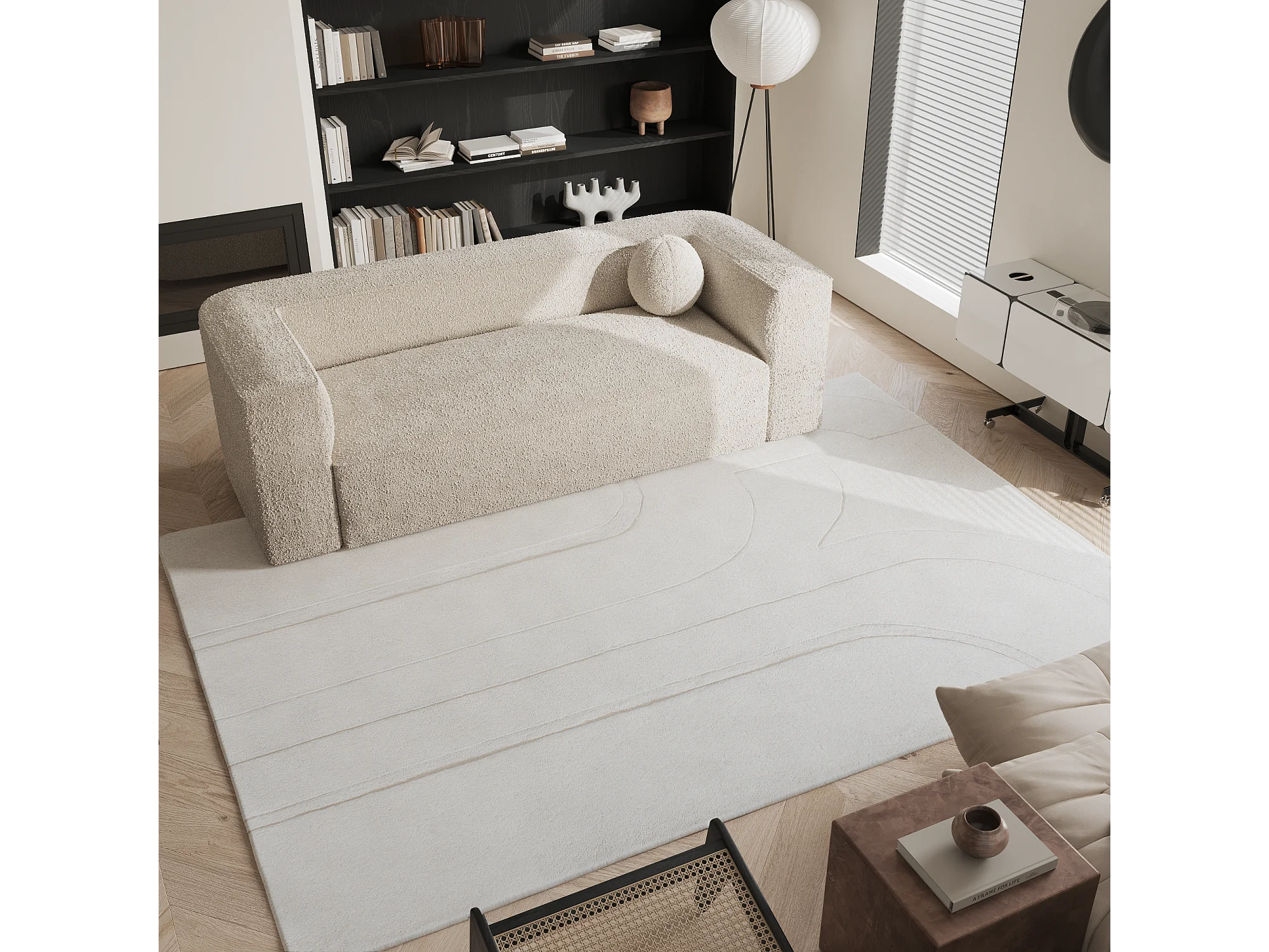 Tapis rectangulaire en laine 200x300cm blanc cassé JARA