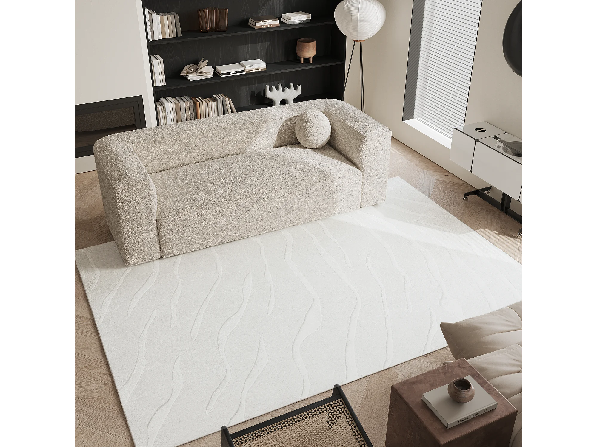 Tapis rectangulaire en laine et viscose blanc cassé 160x230cm DAVEN