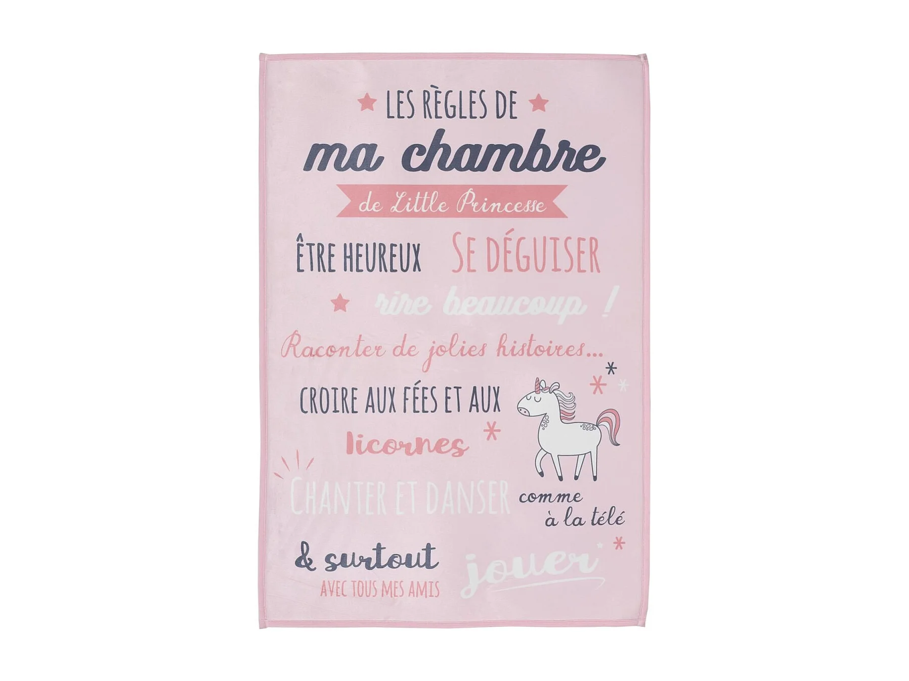 Tapis Enfant "Règles de la Chambre" 60x90cm Rose