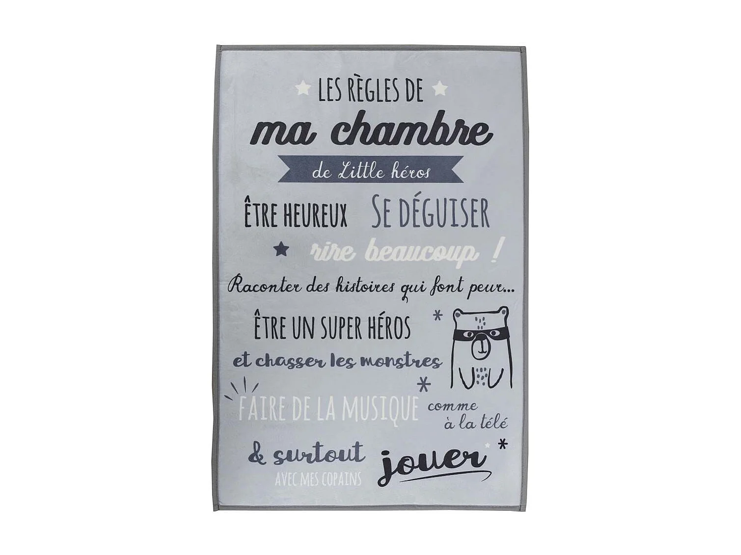 Tapis Enfant "Règles de la Chambre" 60x90cm Gris