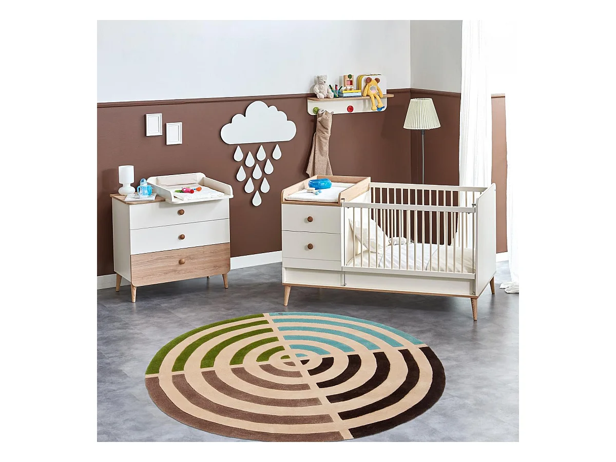 Tapis rond Ø150cm fait main en laine motif géométrique pour salon LIFOU