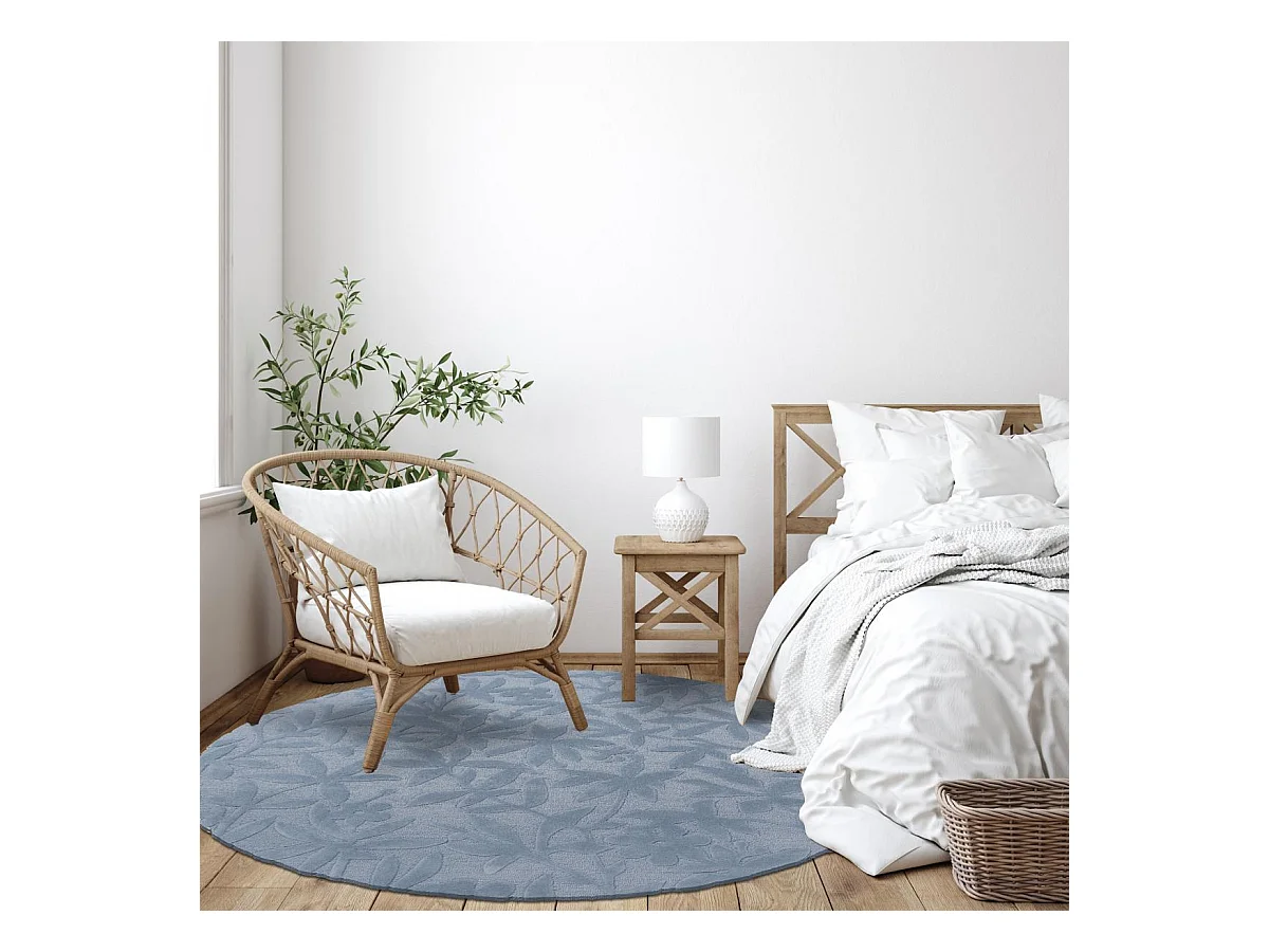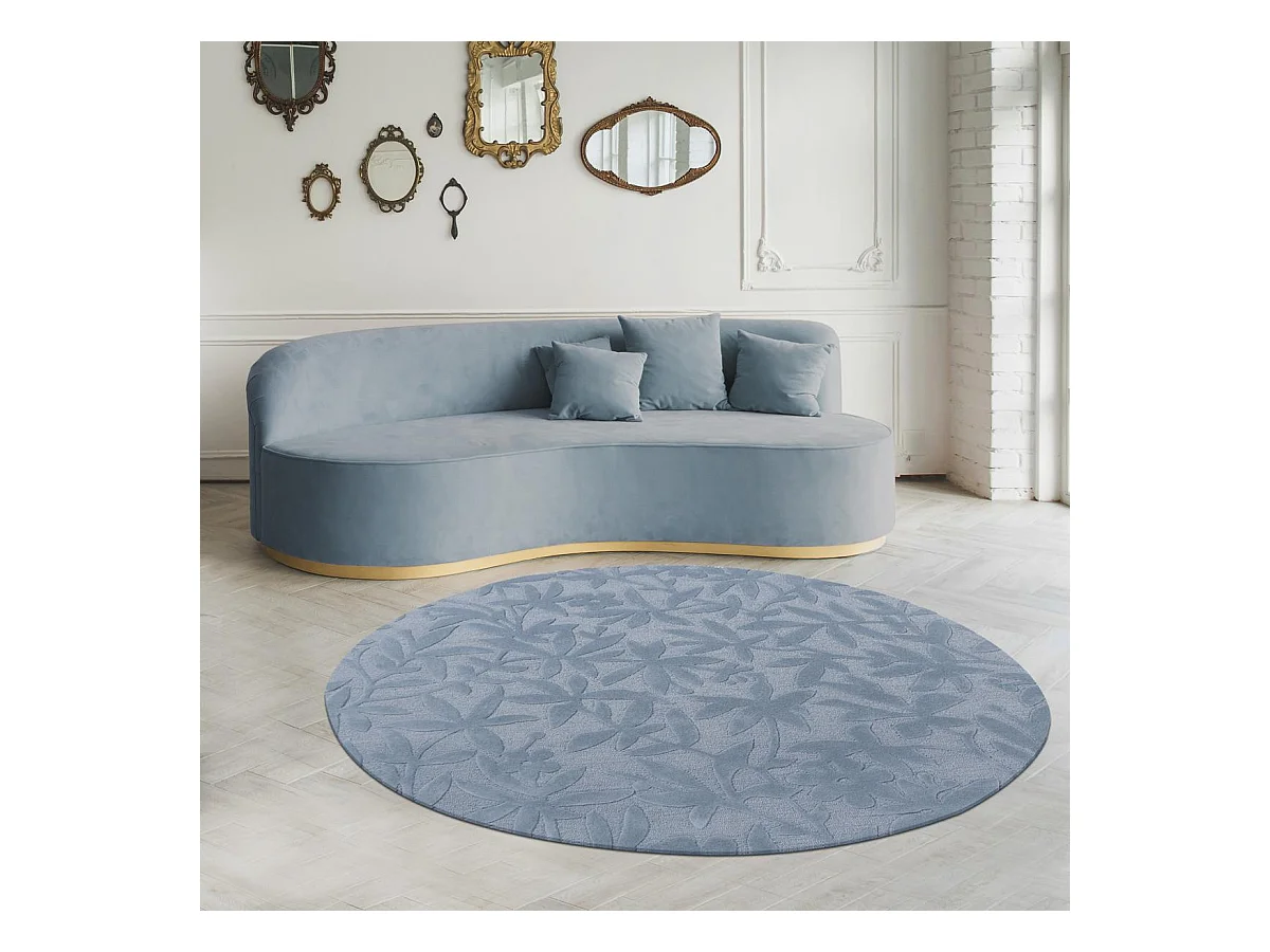 Tapis rond Ø150cm fait main en laine motif floral pour chambre CLEAVERS