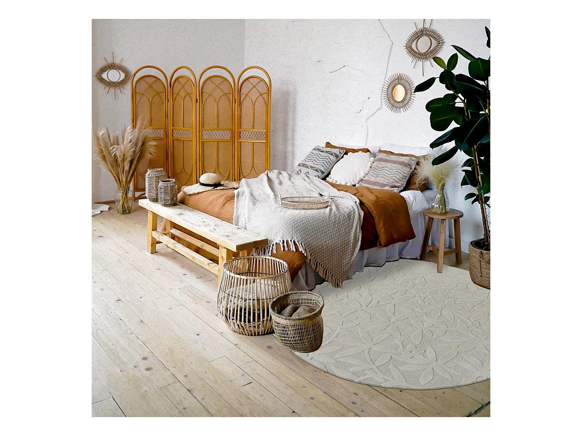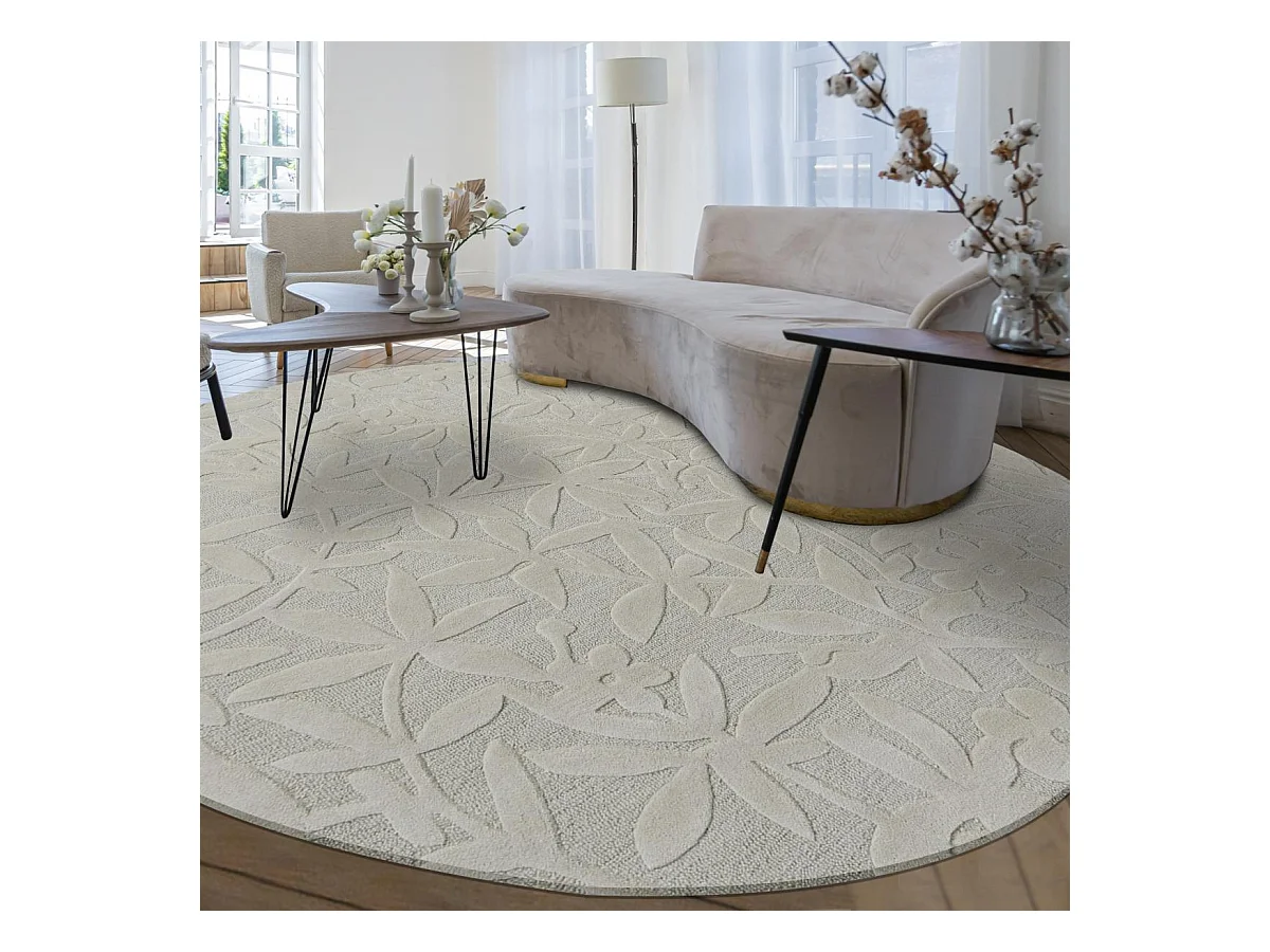 Tapis rond Ø200cm fait main en laine motif floral pour salon CLEAVERS