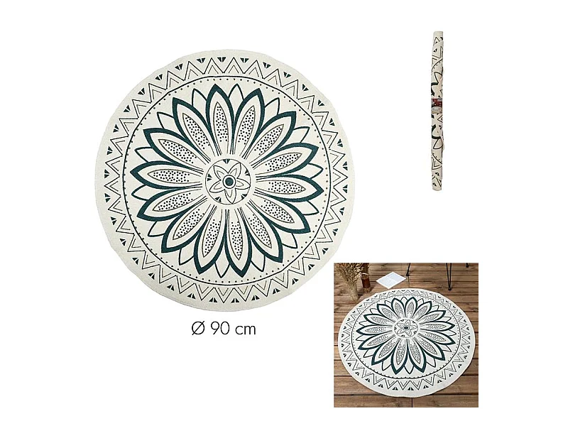 Tapis Rond Imprimé "Mandala" 90cm Blanc