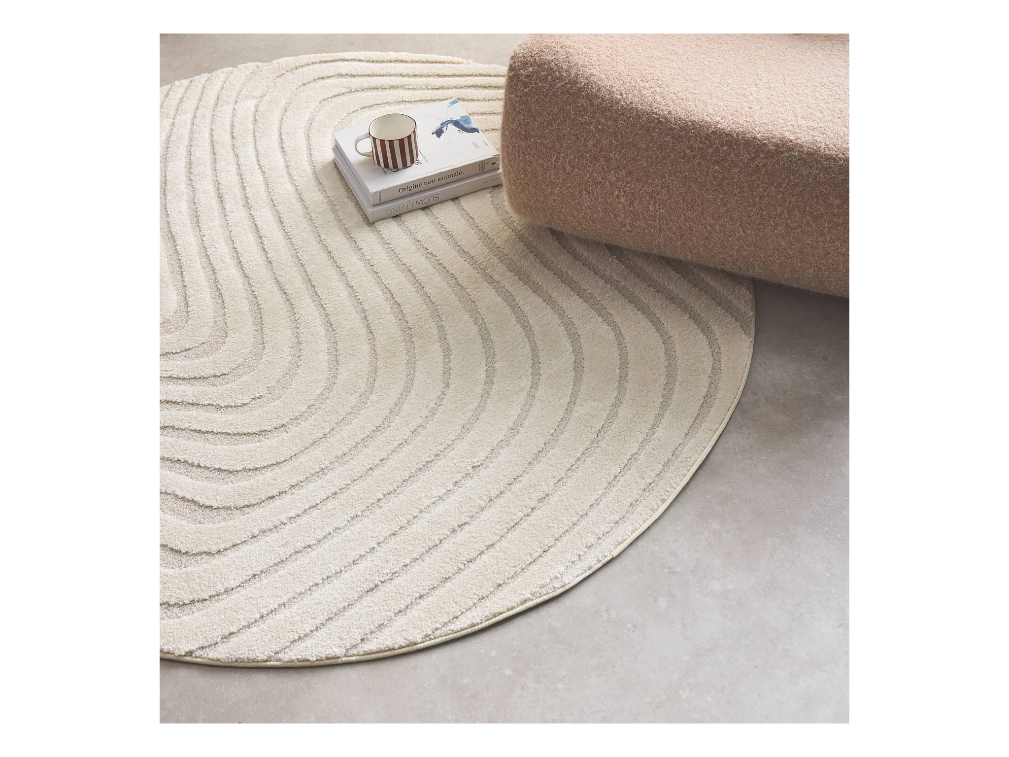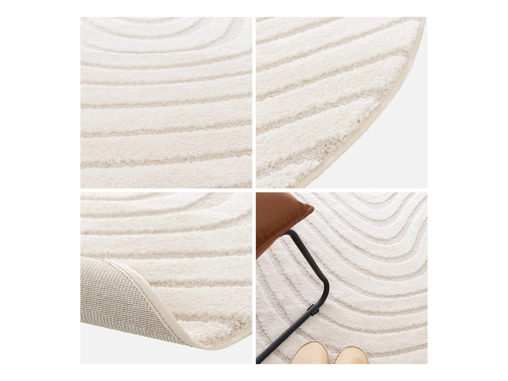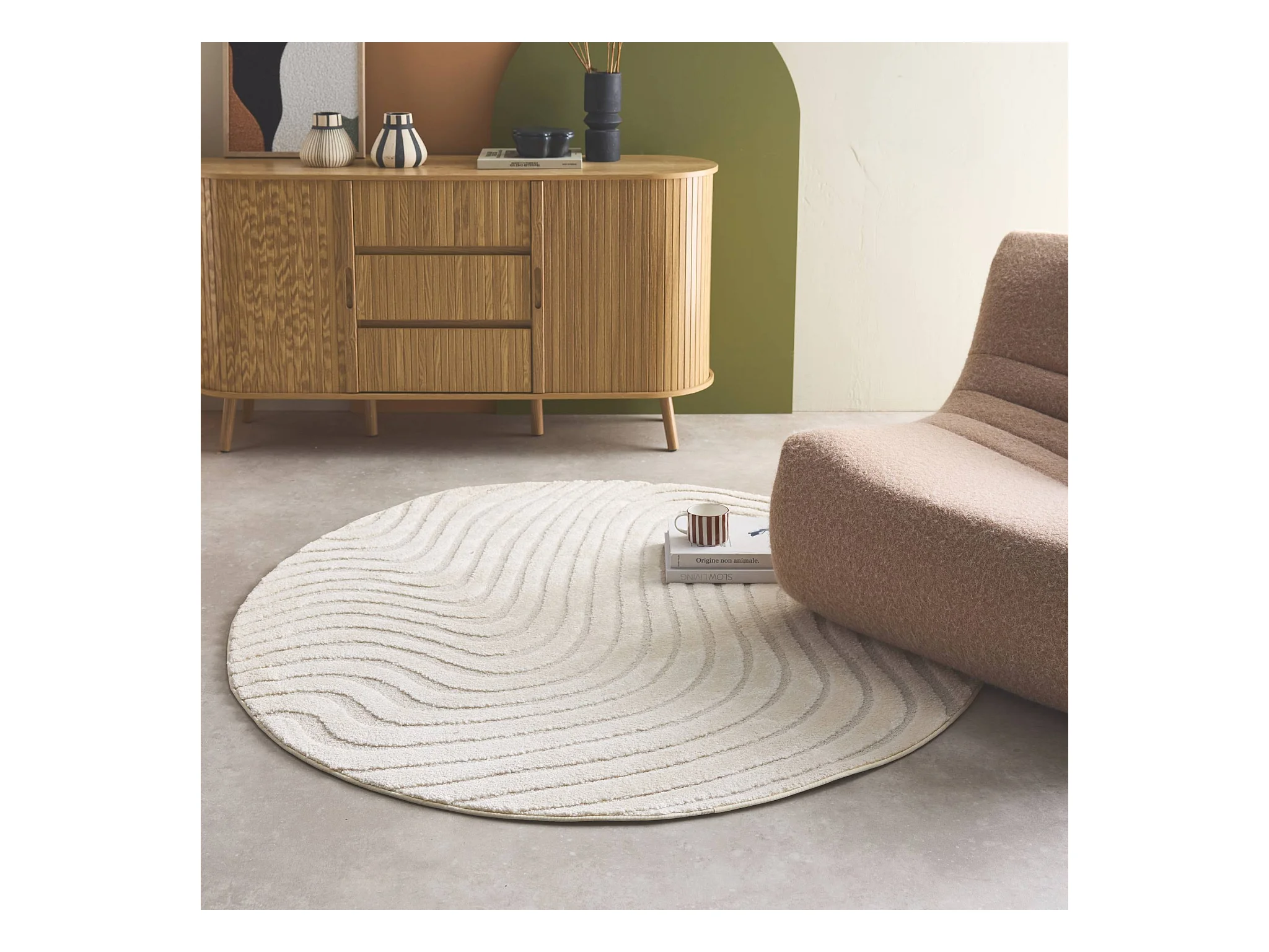 Tapis rond intérieur motifs ondulations en relief crème Ø160cm