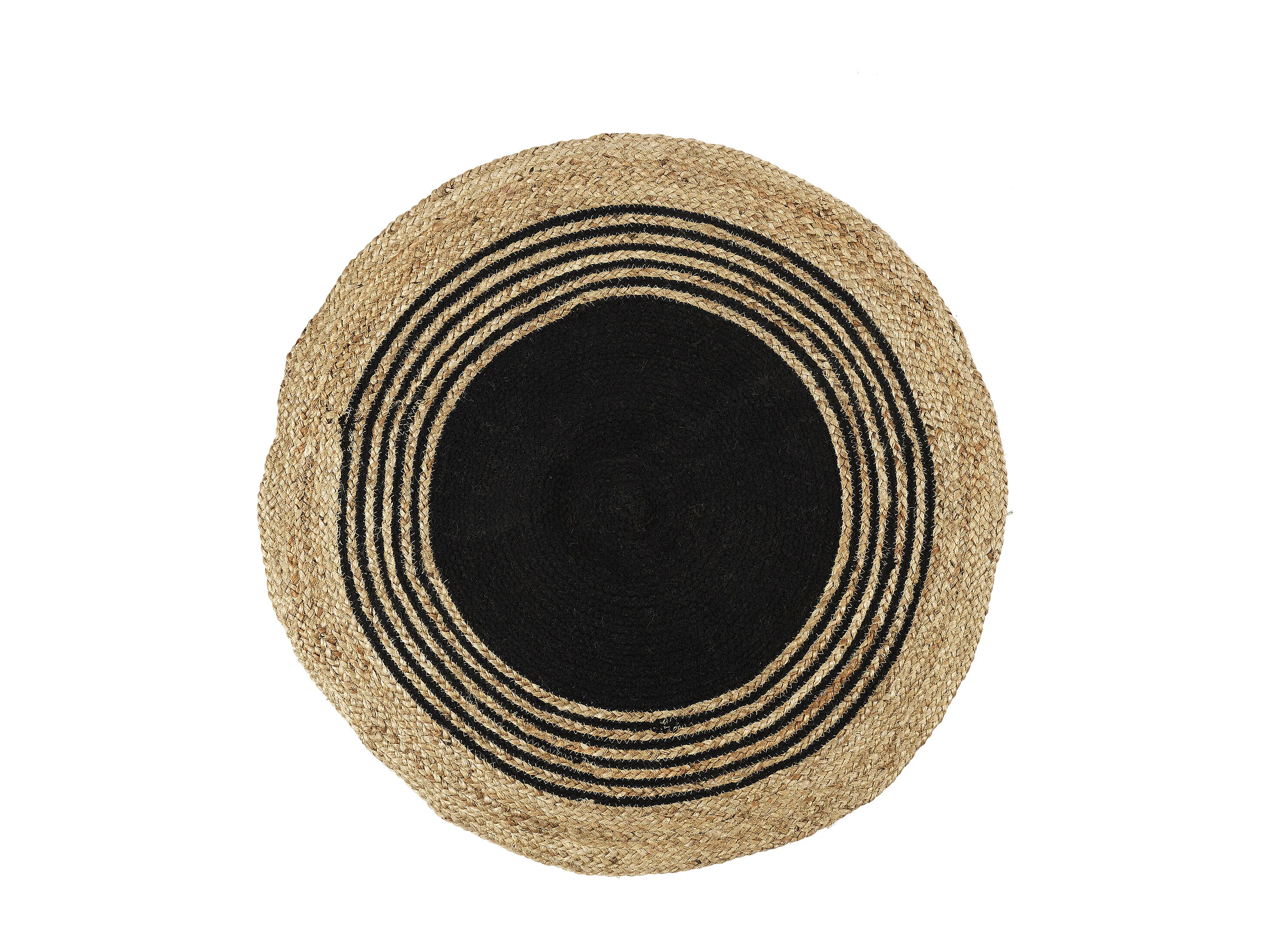 Tapis Rond Jute Coton Noir 90cm Marron, Noir