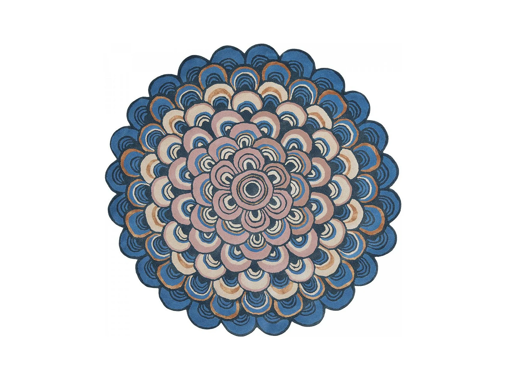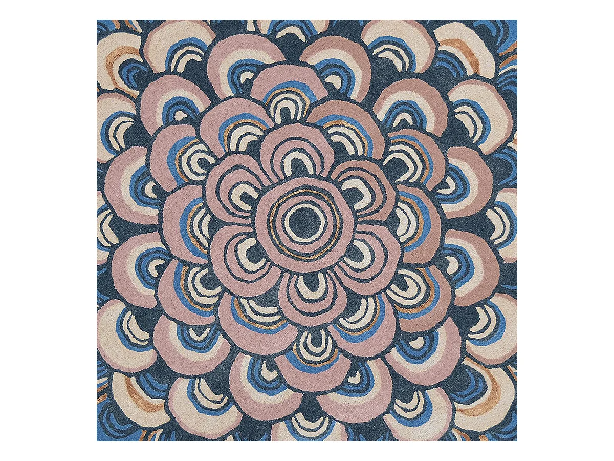 Tapis rond Ø150cm fait à la main en laine motif géométrique pour entrée