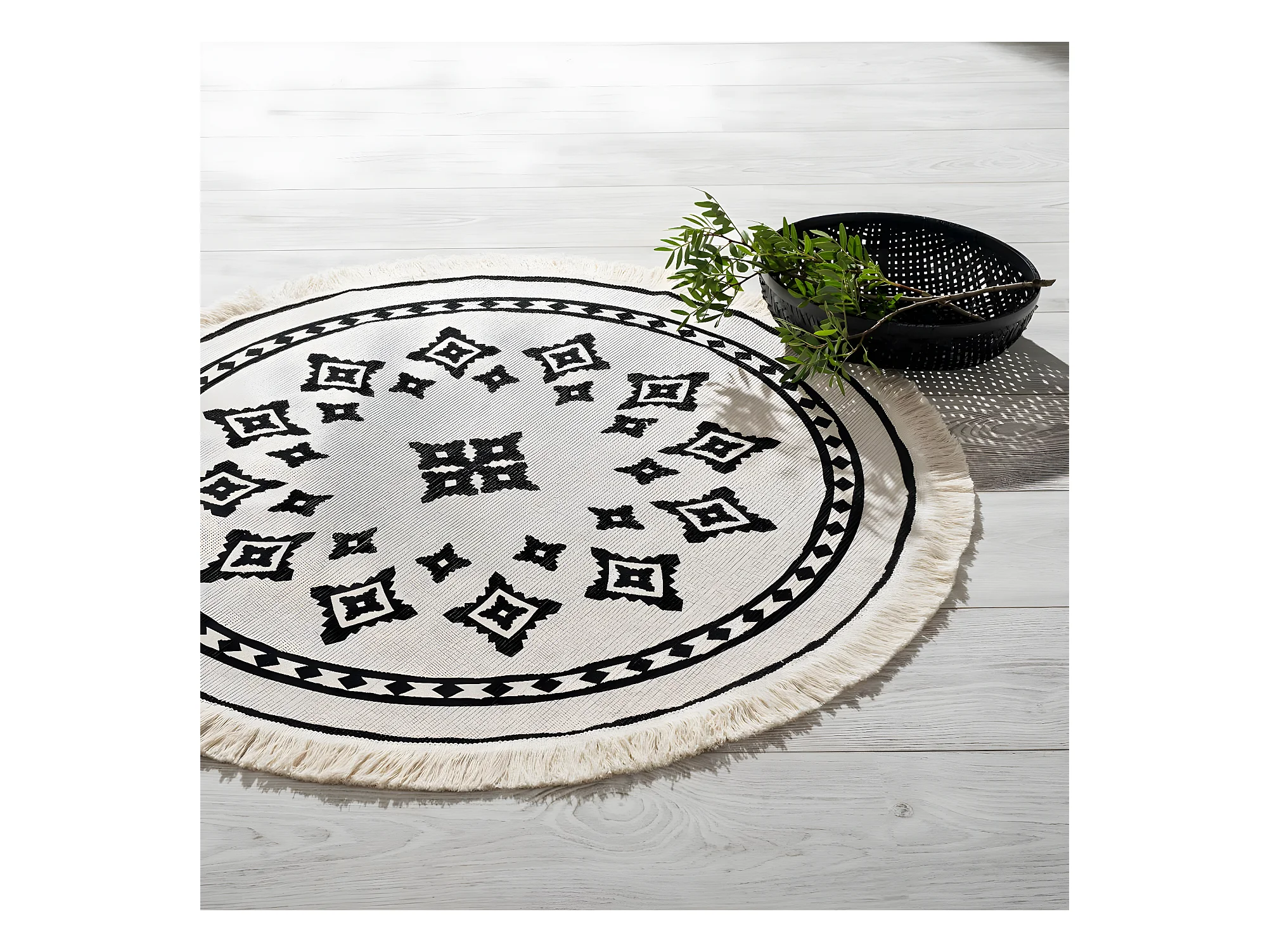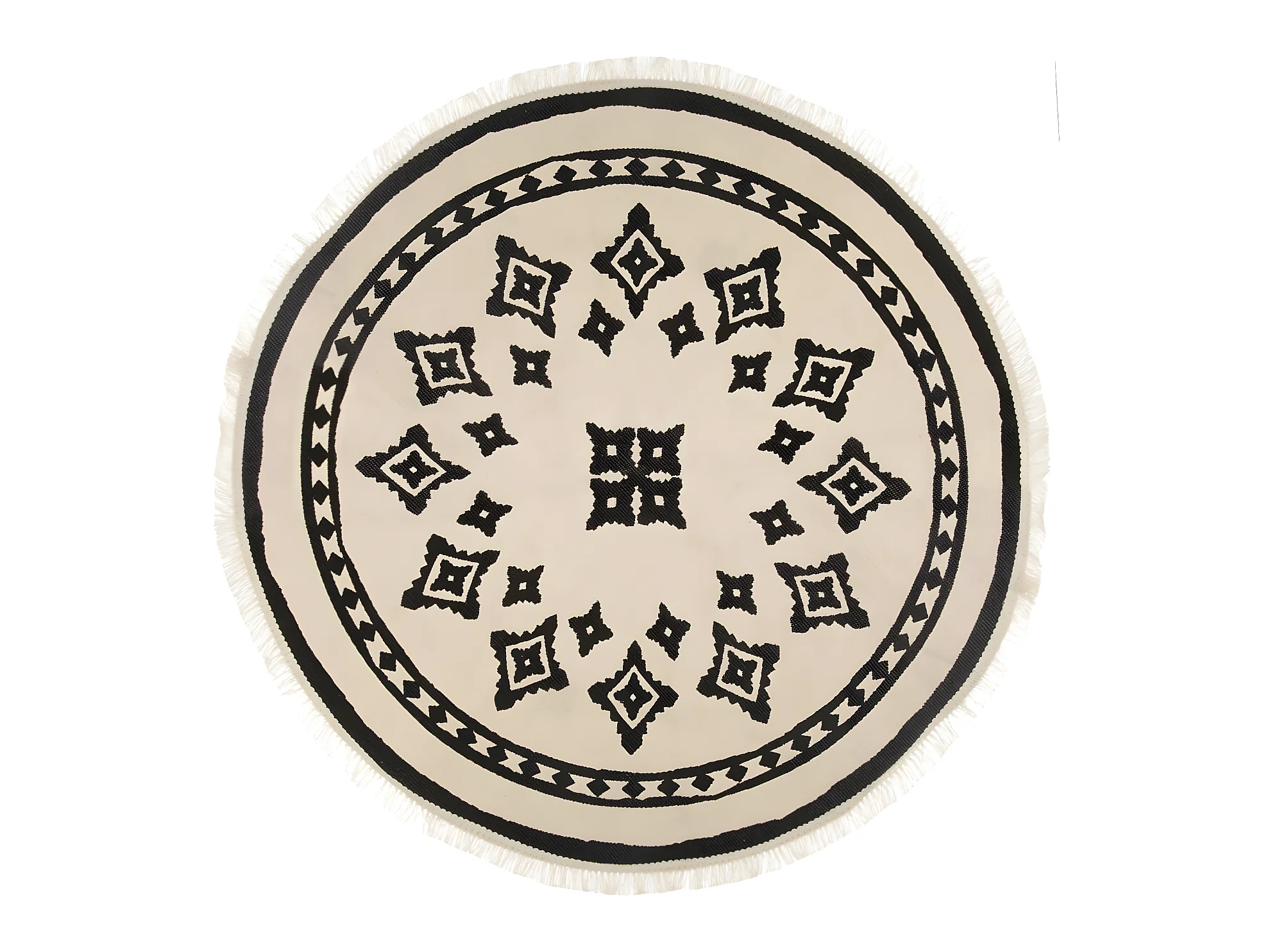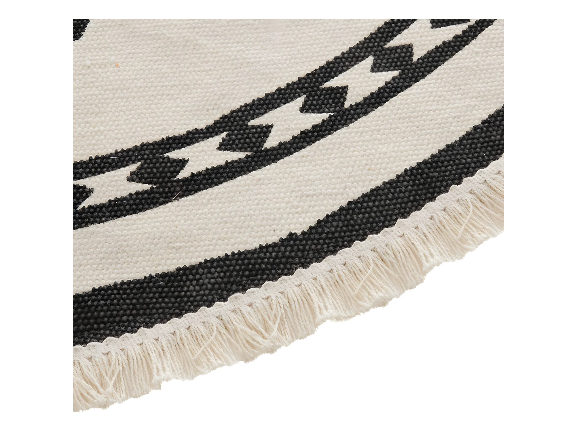 Tapis en coton tissé main Ron Blanc/Noir ø 120cm rond