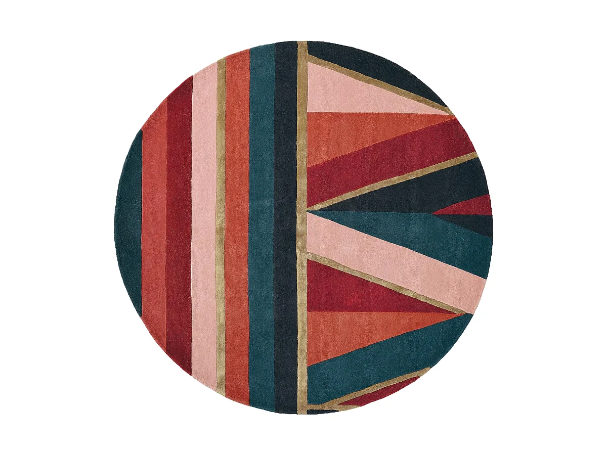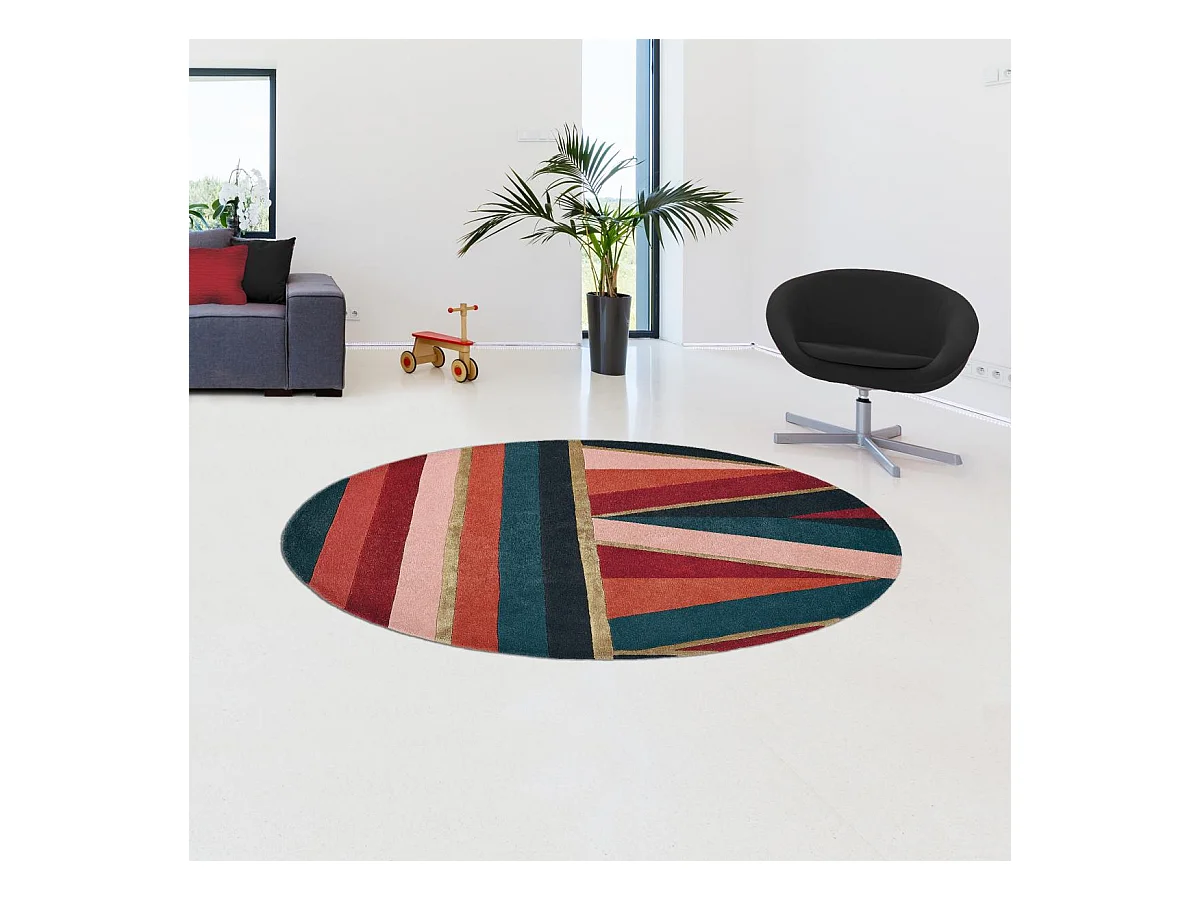 Tapis rond Ø200cm fait à la main en laine motif géométrique pour salon