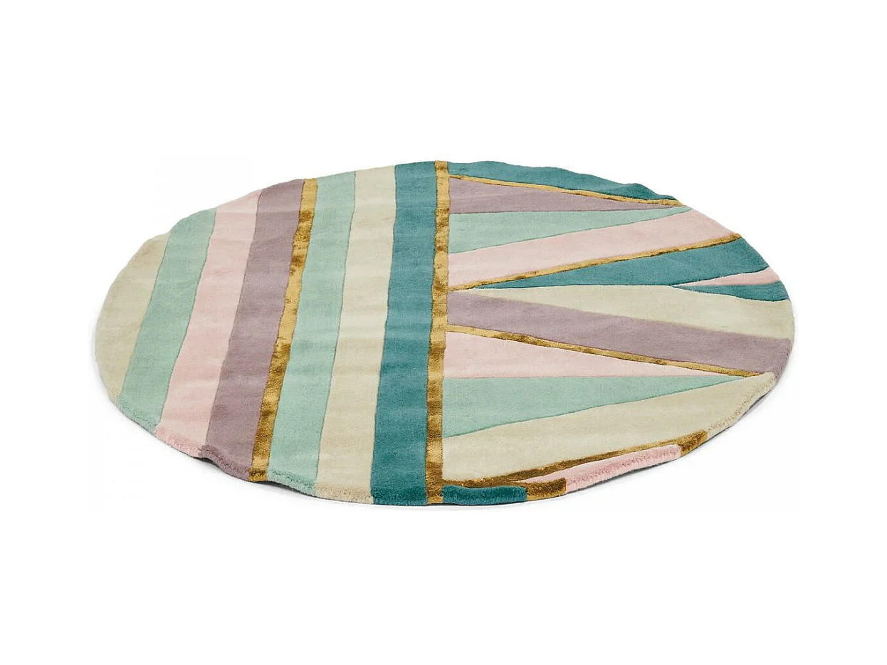 Tapis rond Ø200cm fait à la main en laine motif géométrique pour salon