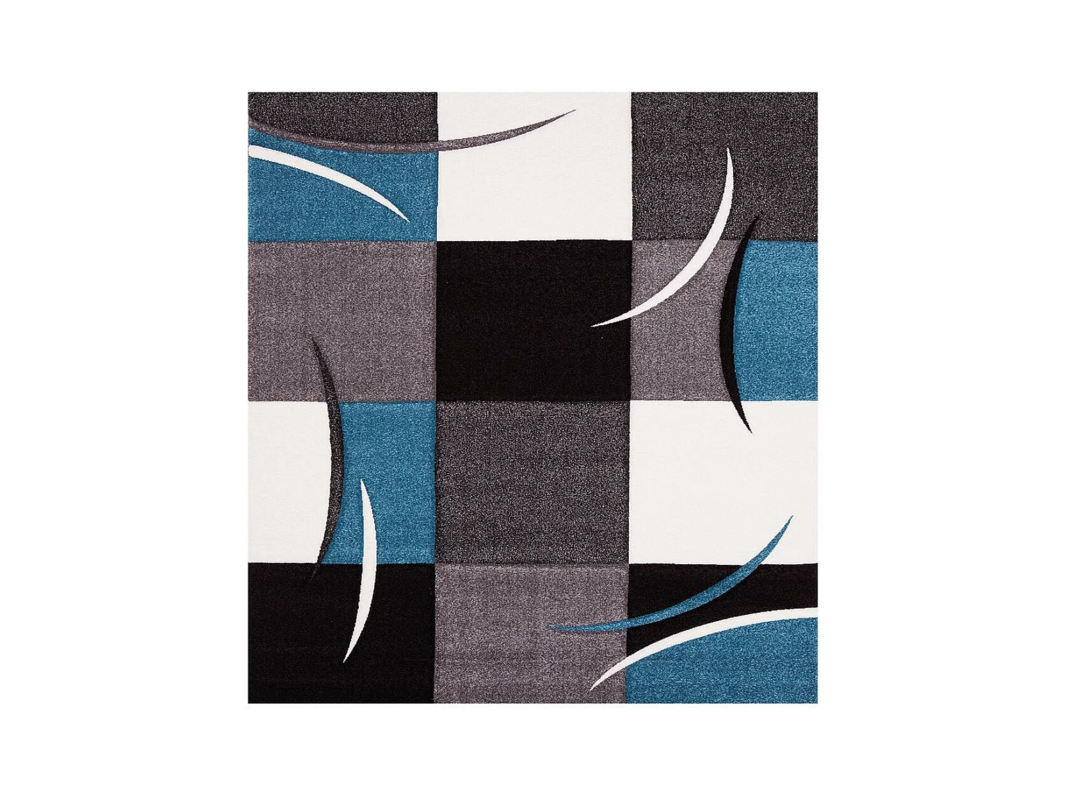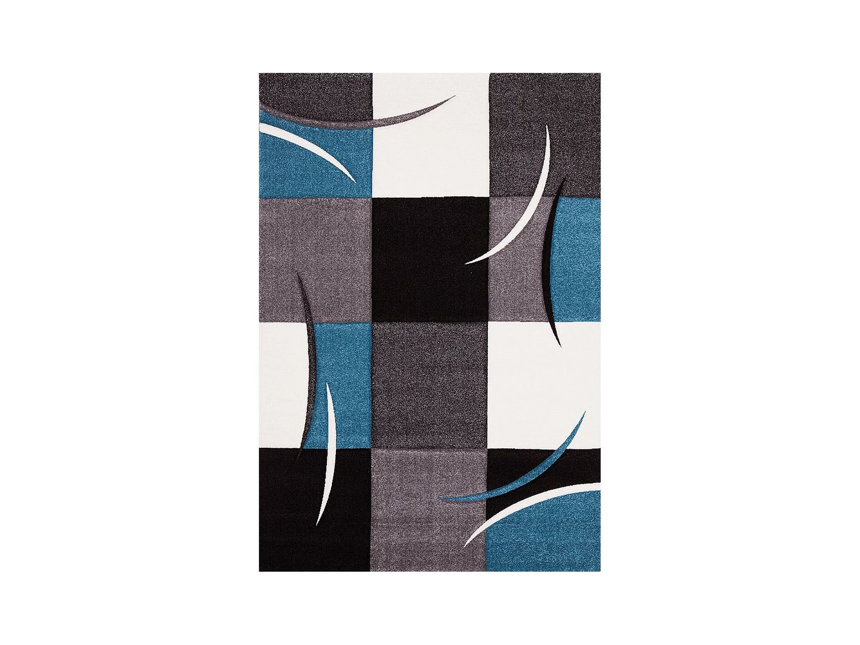 tapis salle à manger 140x200 tissé bleu rectangle motif damier LYN8 COMMA
