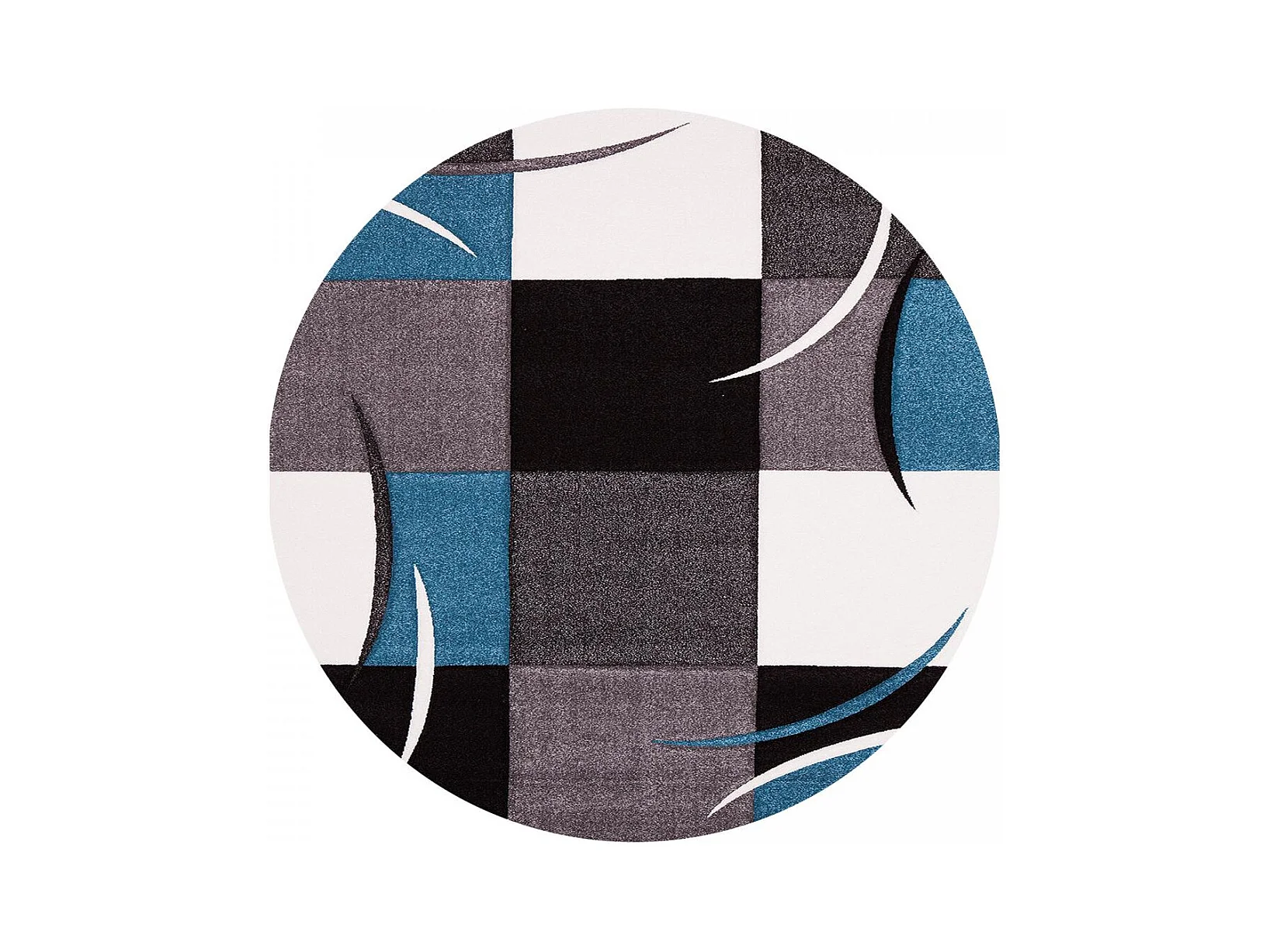 tapis chambre Ø100cm tissé bleu rond motif damier LYN8 COMMA