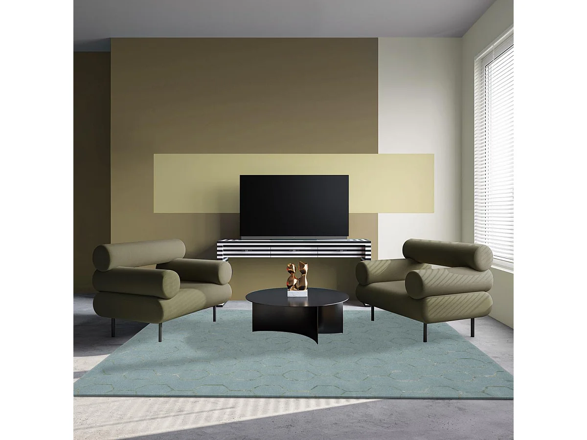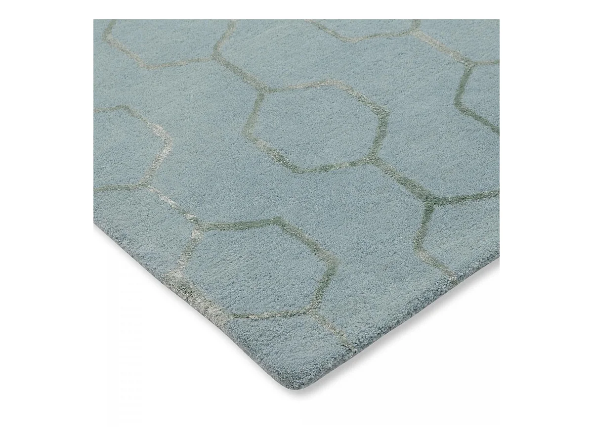 tapis salle à manger 250x350 fait à la main en laine bleu et vert motif faux uni